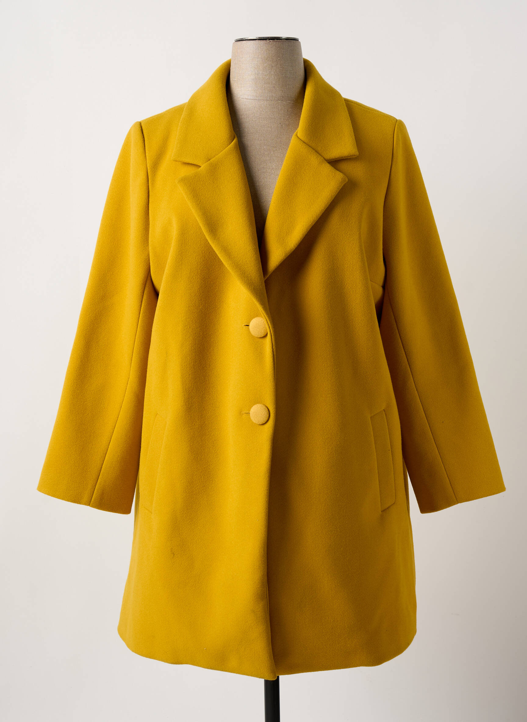 Palton Lung Multiples Galben Fără Glugă