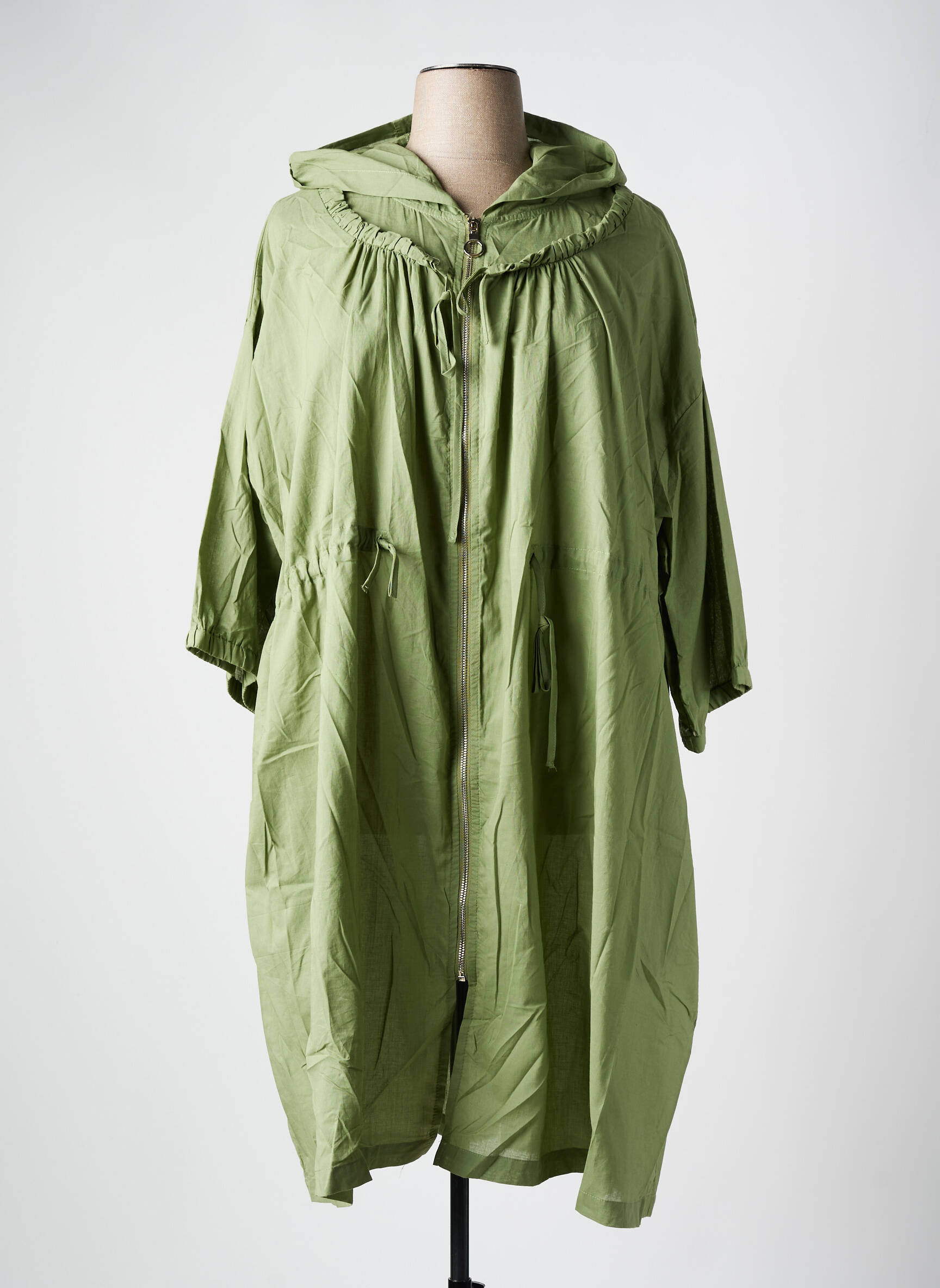 Palton Lung Pomme Rouge Verde Cu Glugă