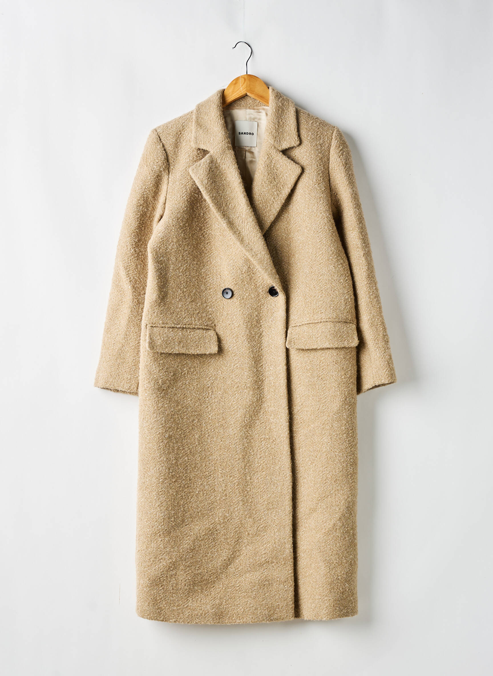 Palton Lung Sandro Bej Fără Glugă