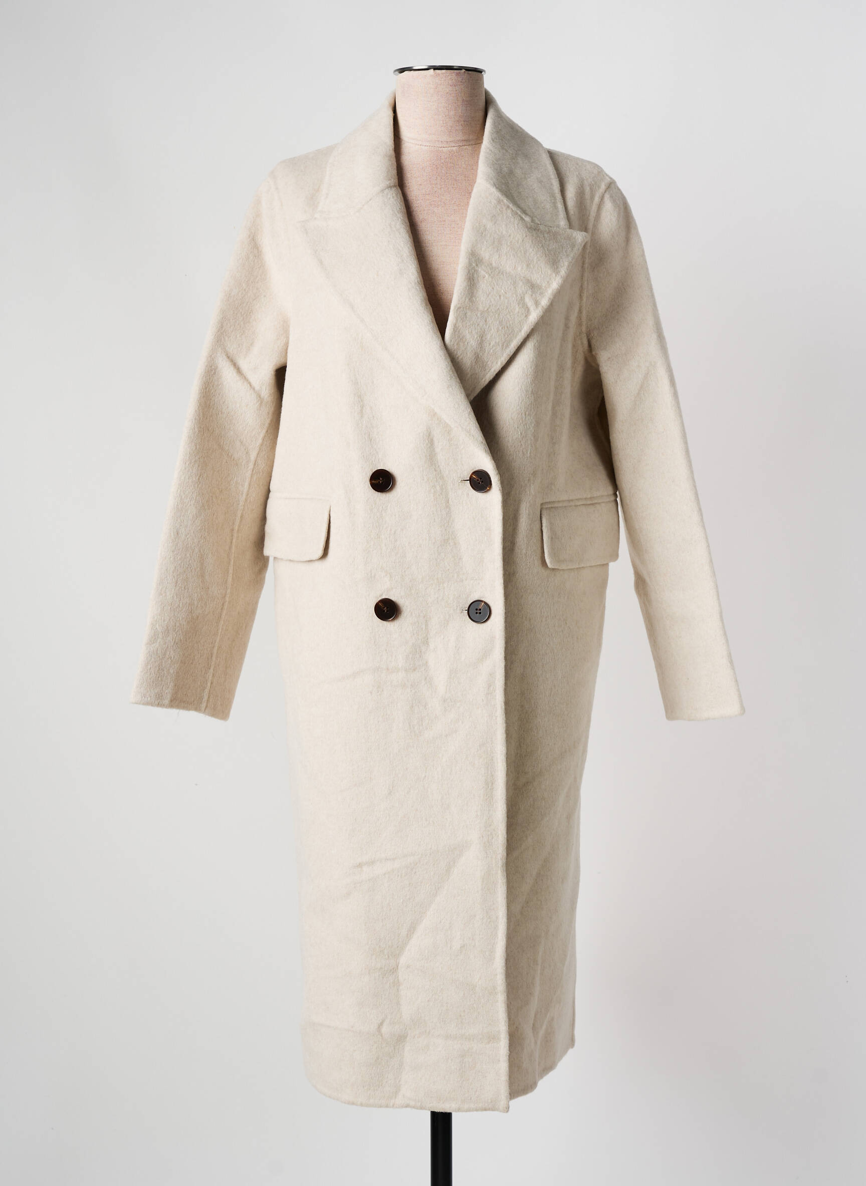 Palton Lung See U Soon Bej Fără Glugă