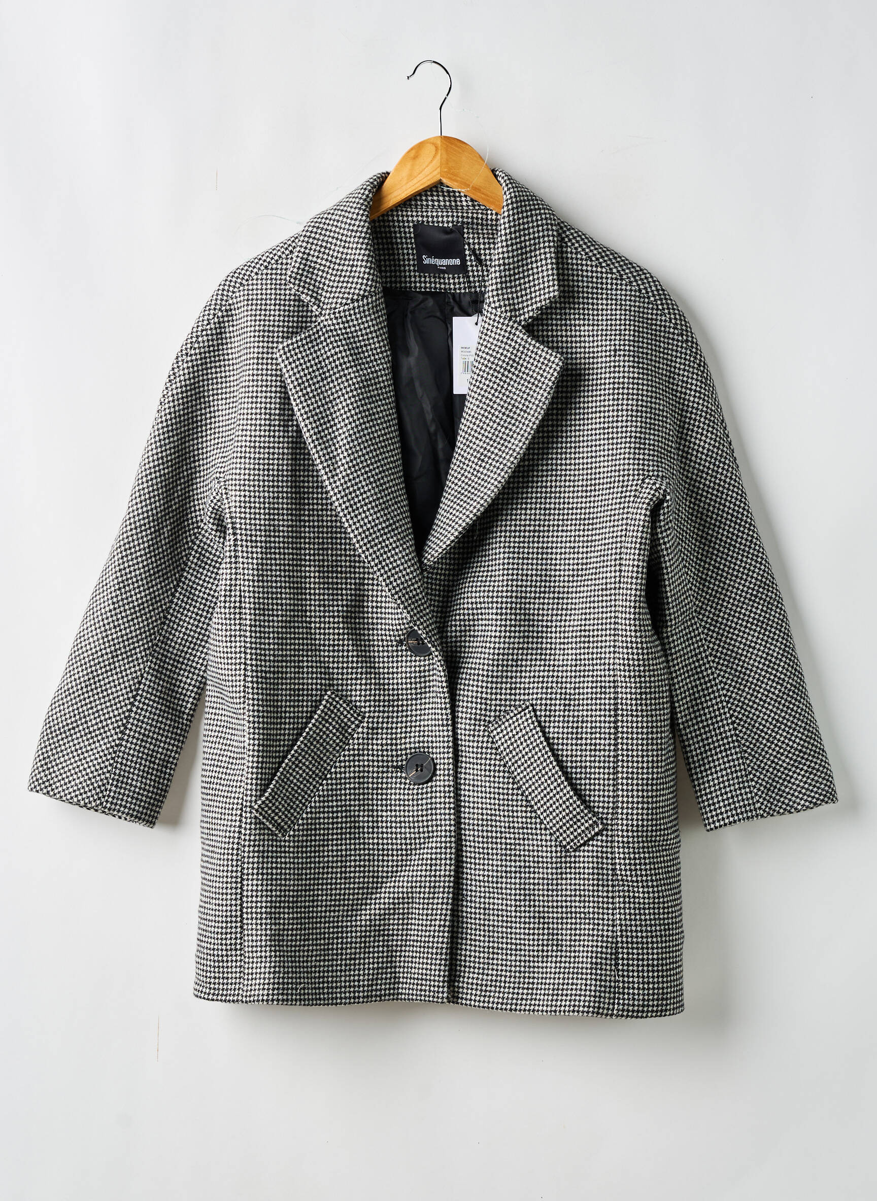 Palton Lung Sinequanone Negru Fără Glugă