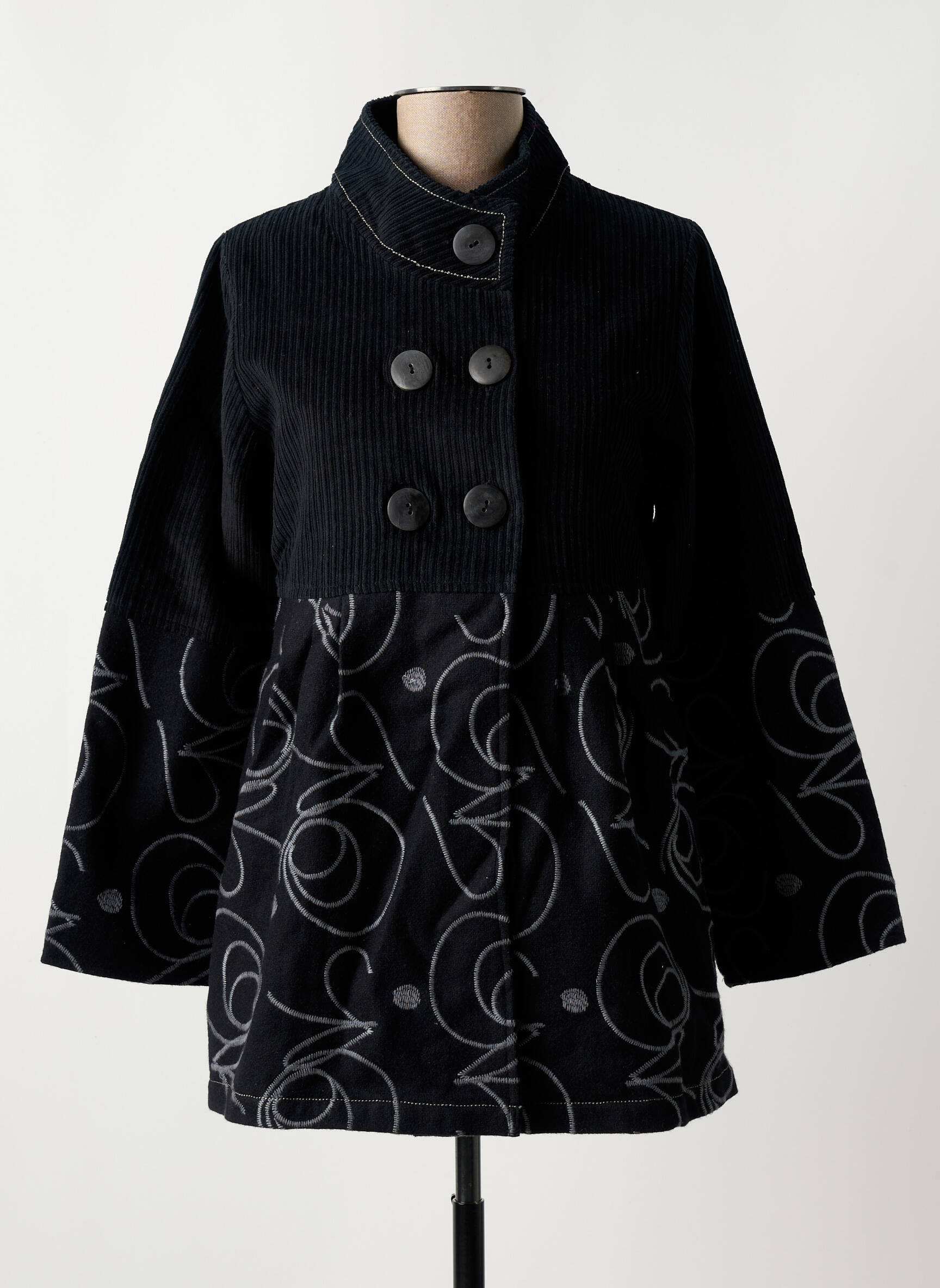 Palton Scurt Nid D'abeille Negru Fără Glugă