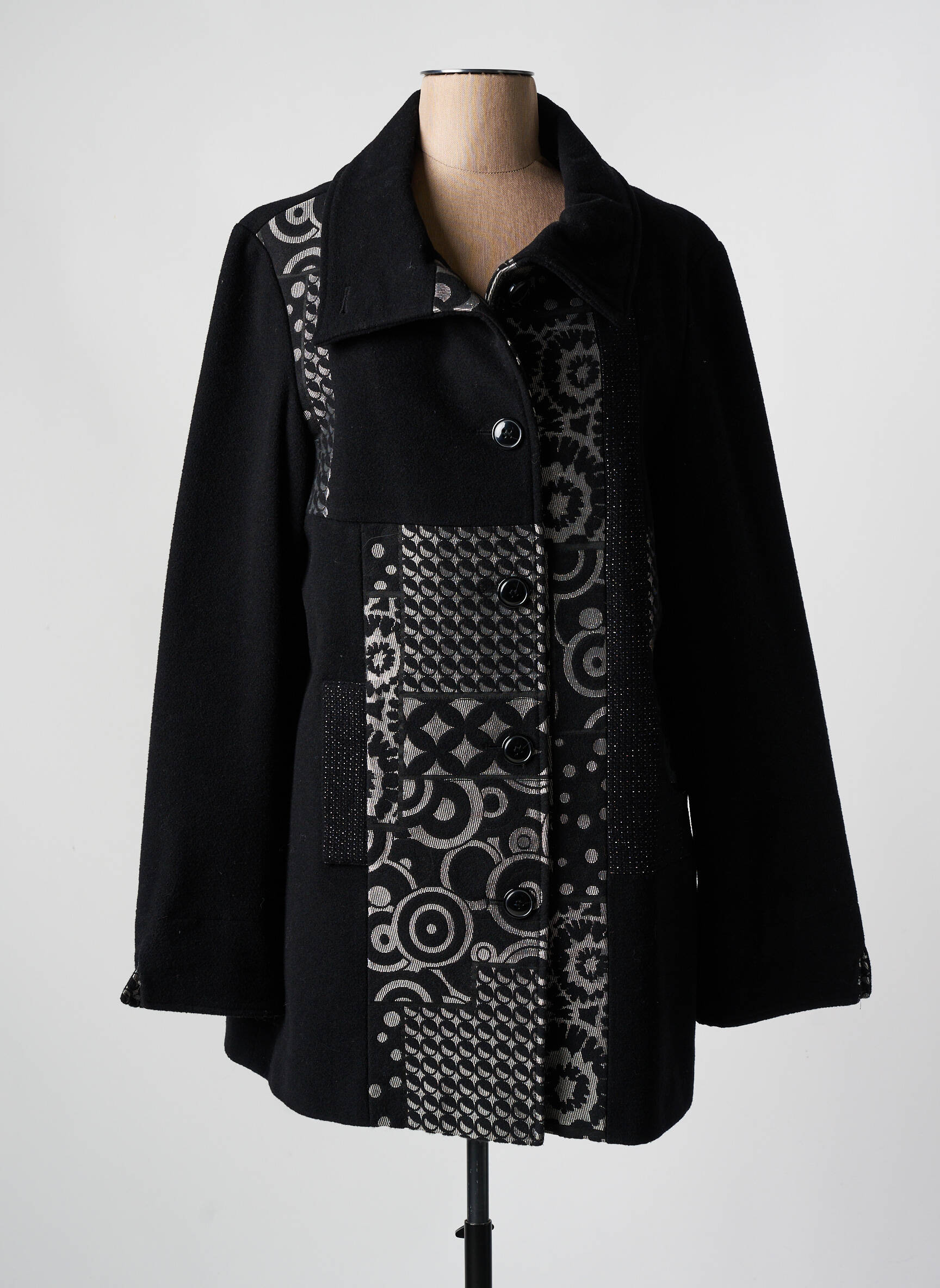Palton Scurt Square Negru Fără Glugă