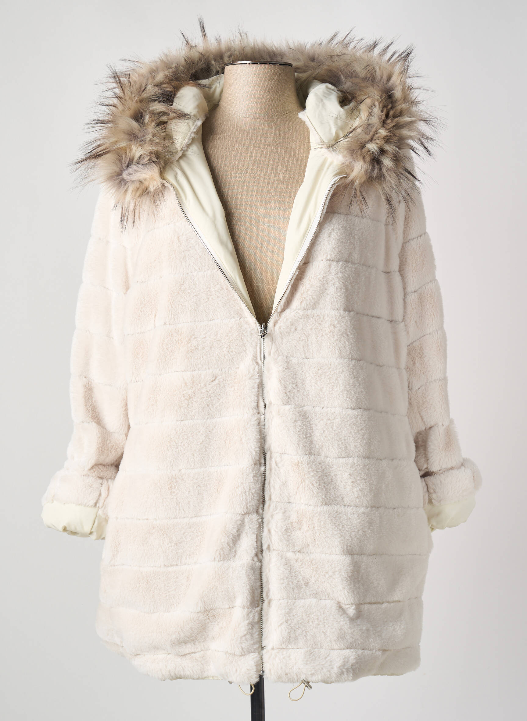Palton Scurt Tinta Bej Cu Glugă