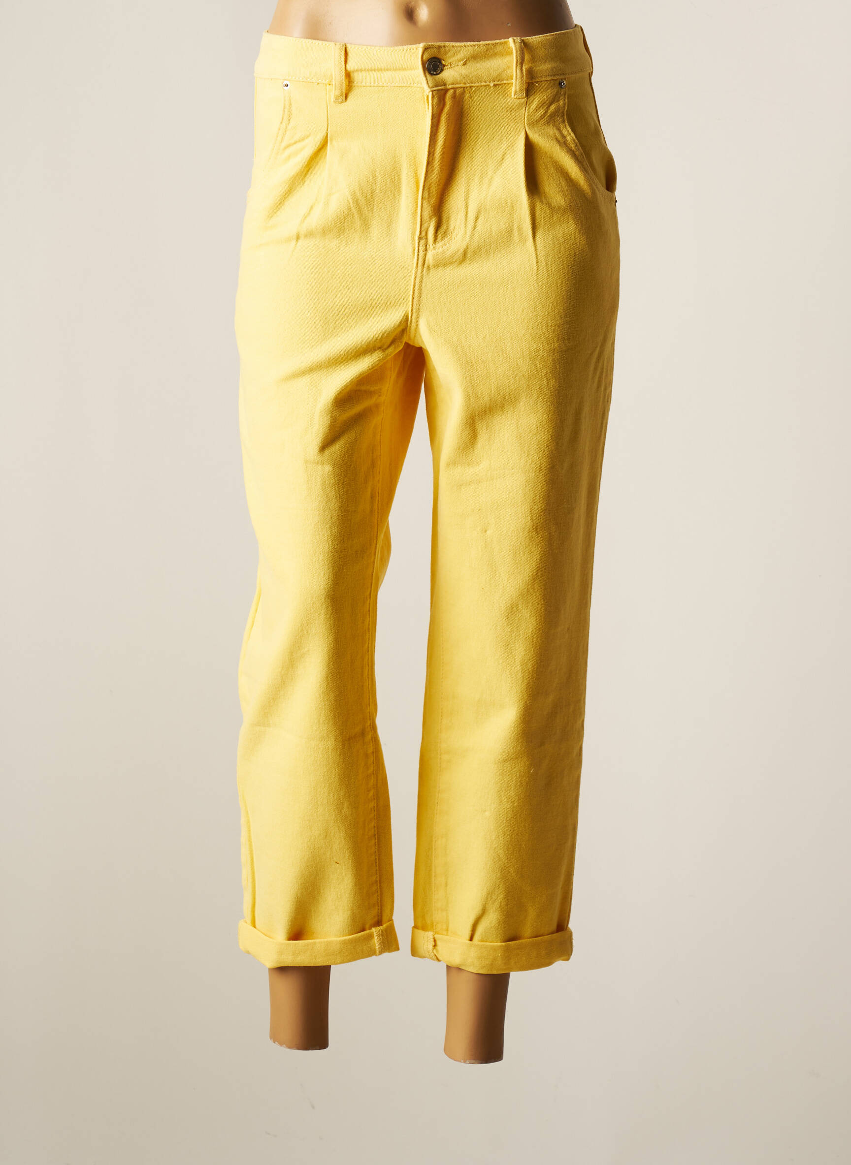 Pantalon Chino Miss Bonbon Jeans Galben Talie Înaltă