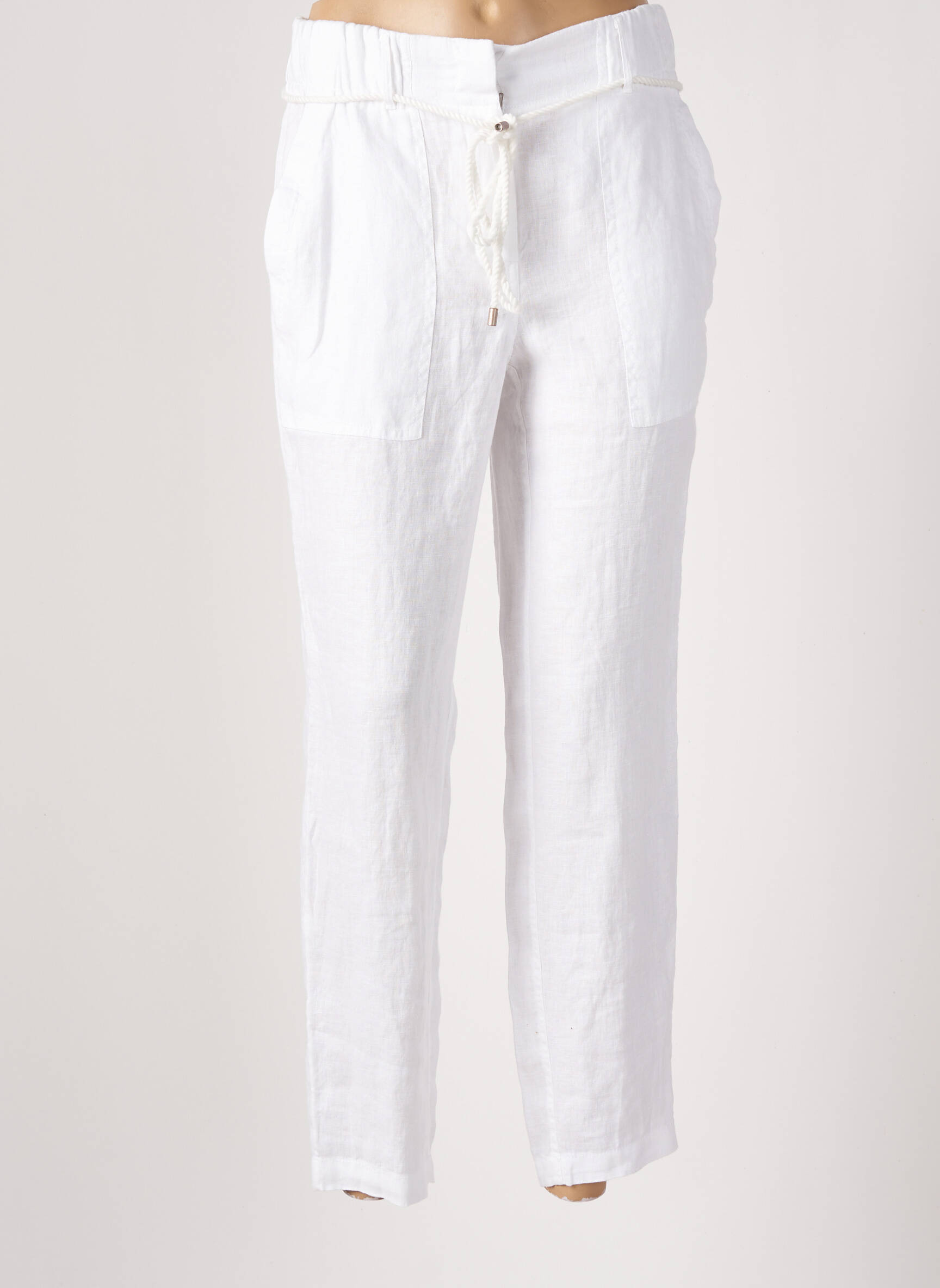 Pantalon Drept Cecil Alb Talie Înaltă