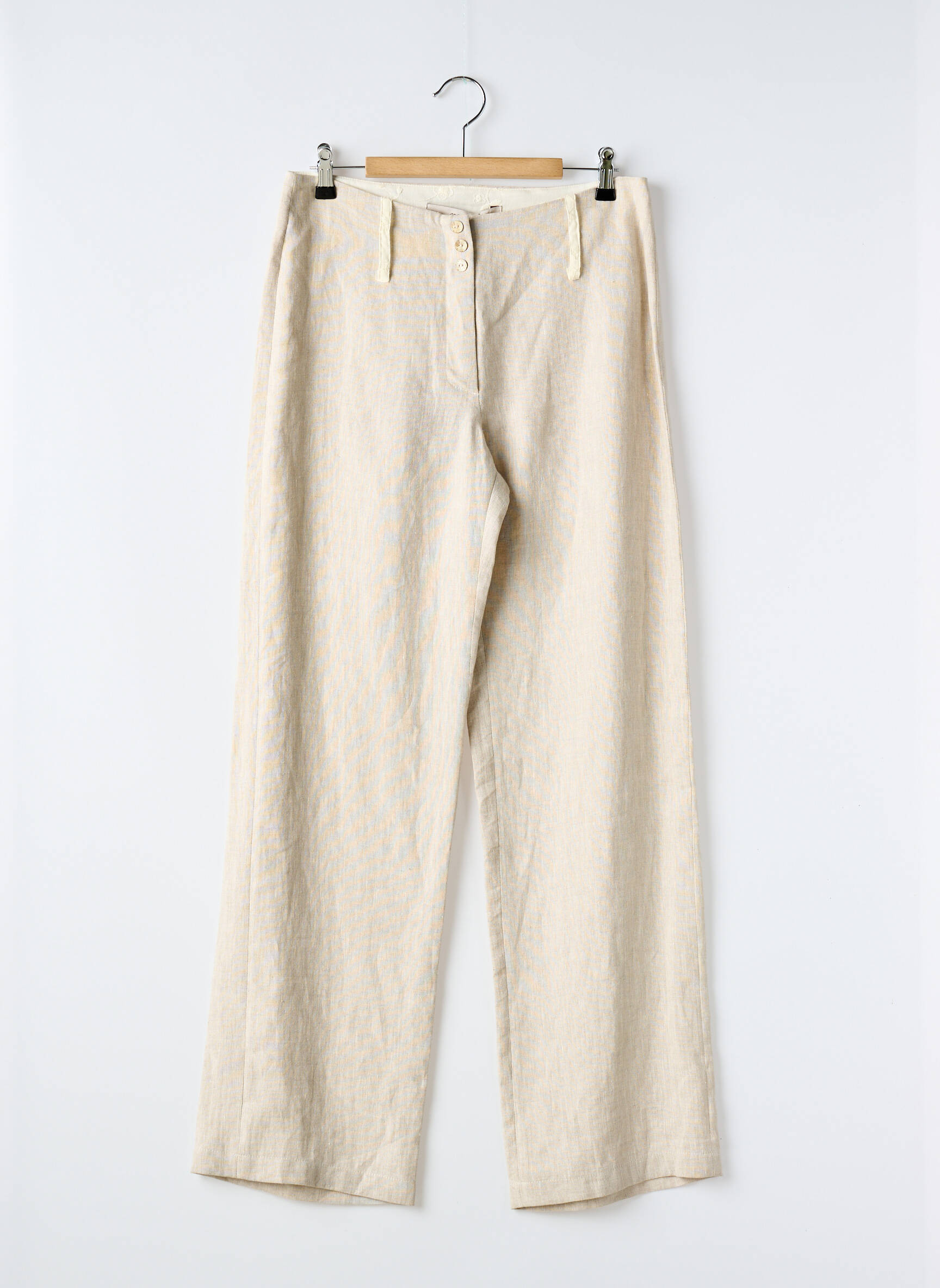 Pantalon Drept Coco Menthe Bej Talie Înaltă