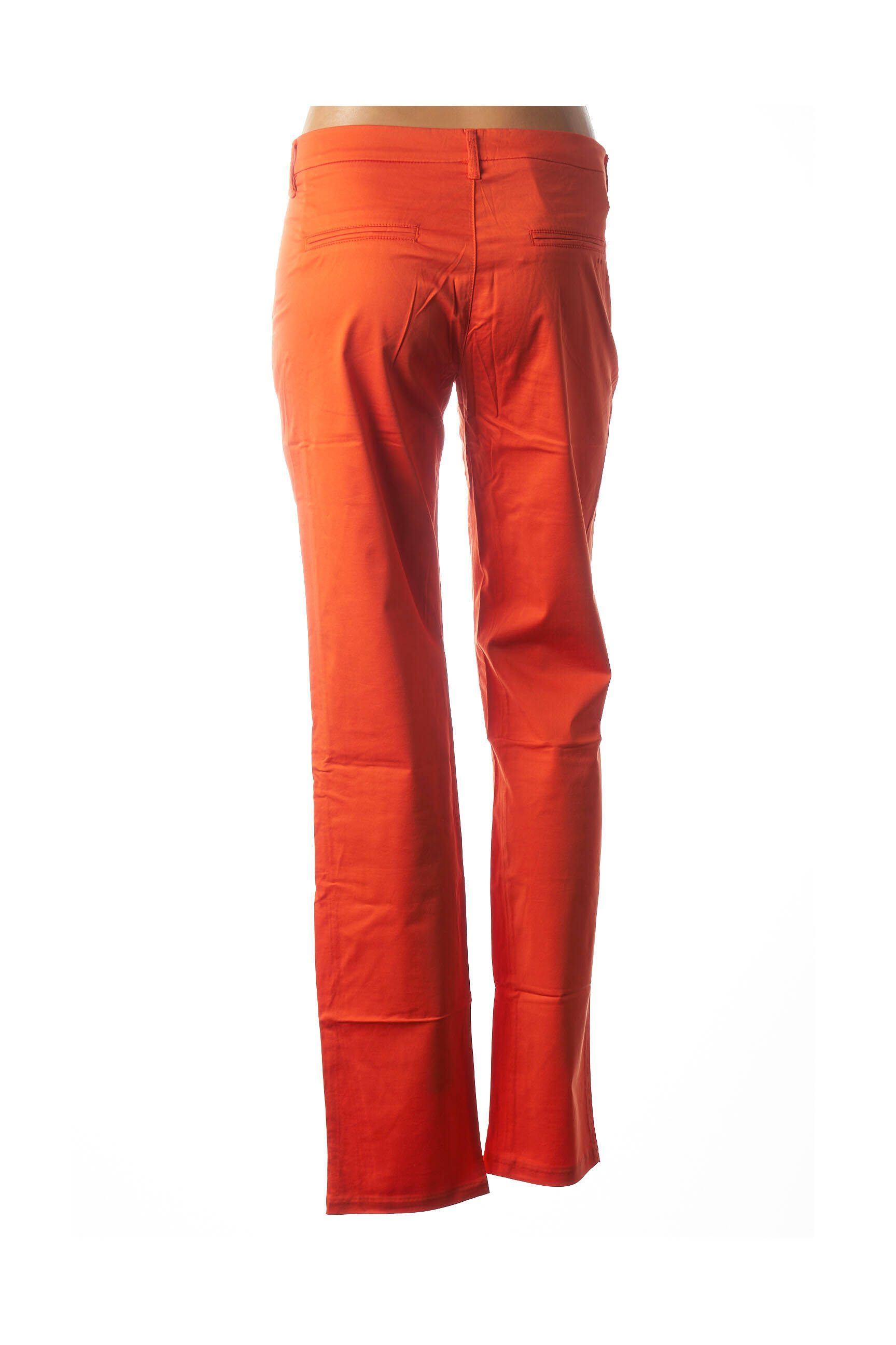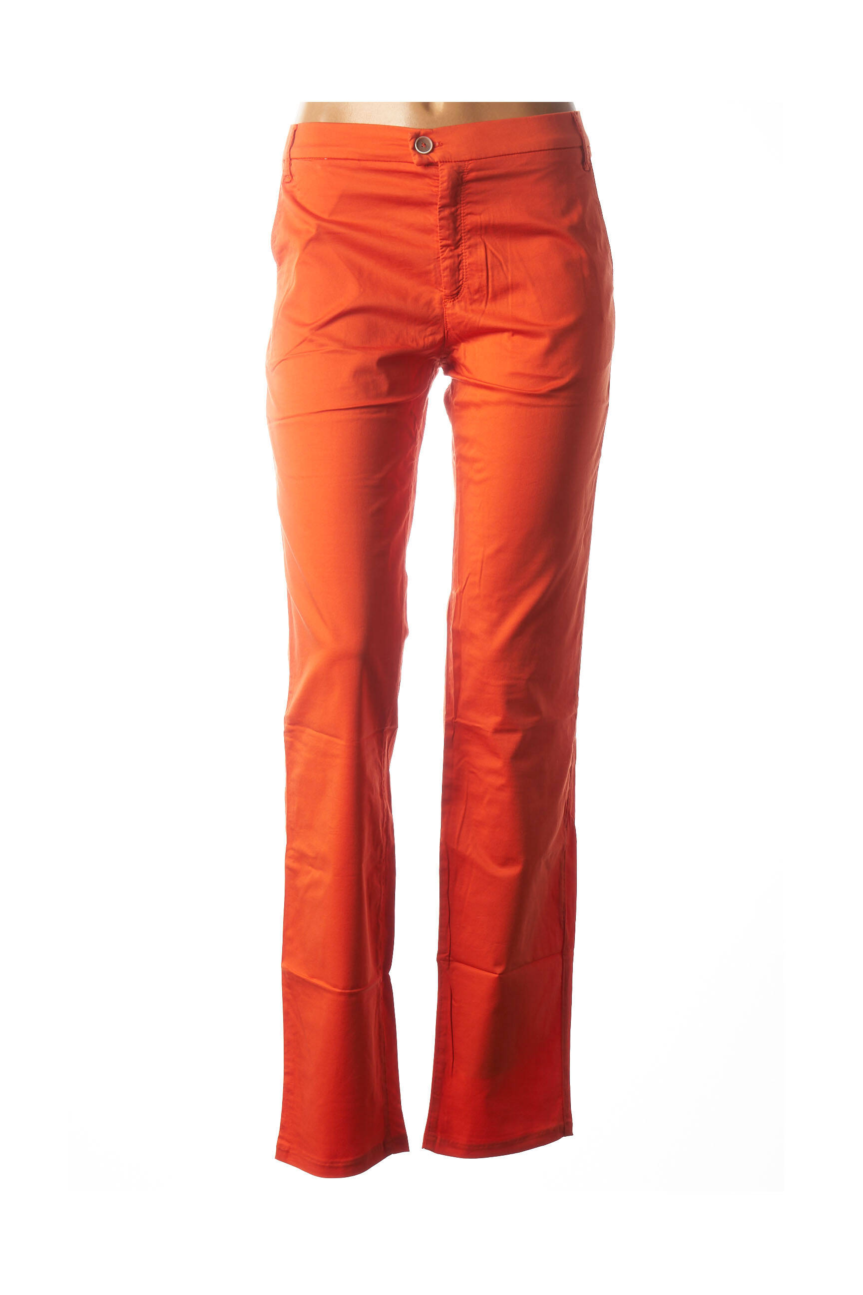 Pantalon Drept Couturist Portocaliu Talie Joasă