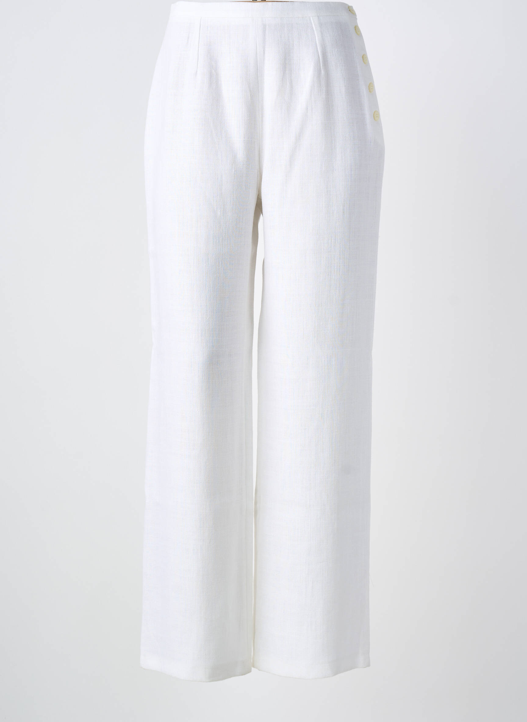 Pantalon Drept Fedora Alb Talie Înaltă