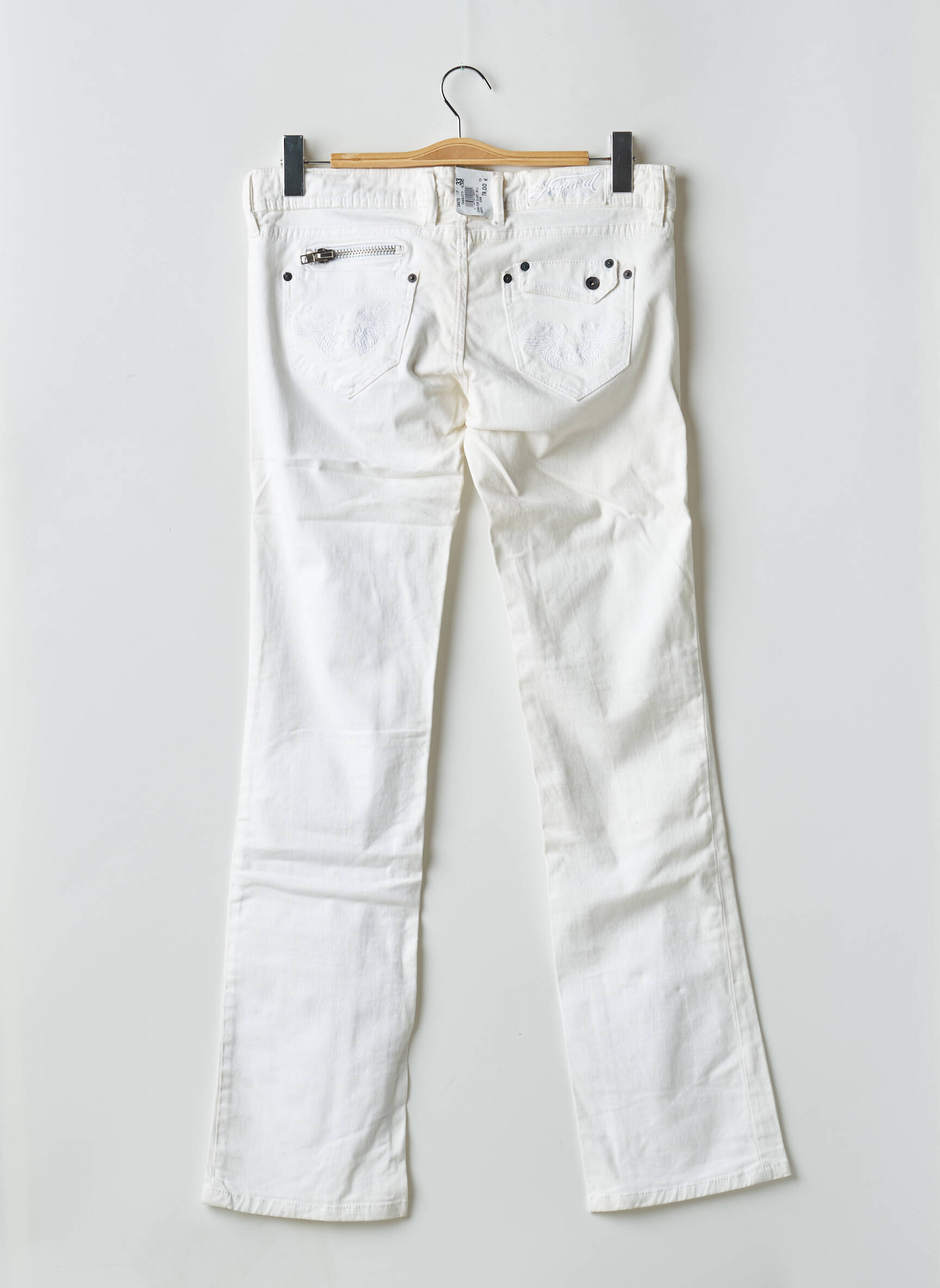 Pantalon Drept Kaporal Alb Talie Joasă