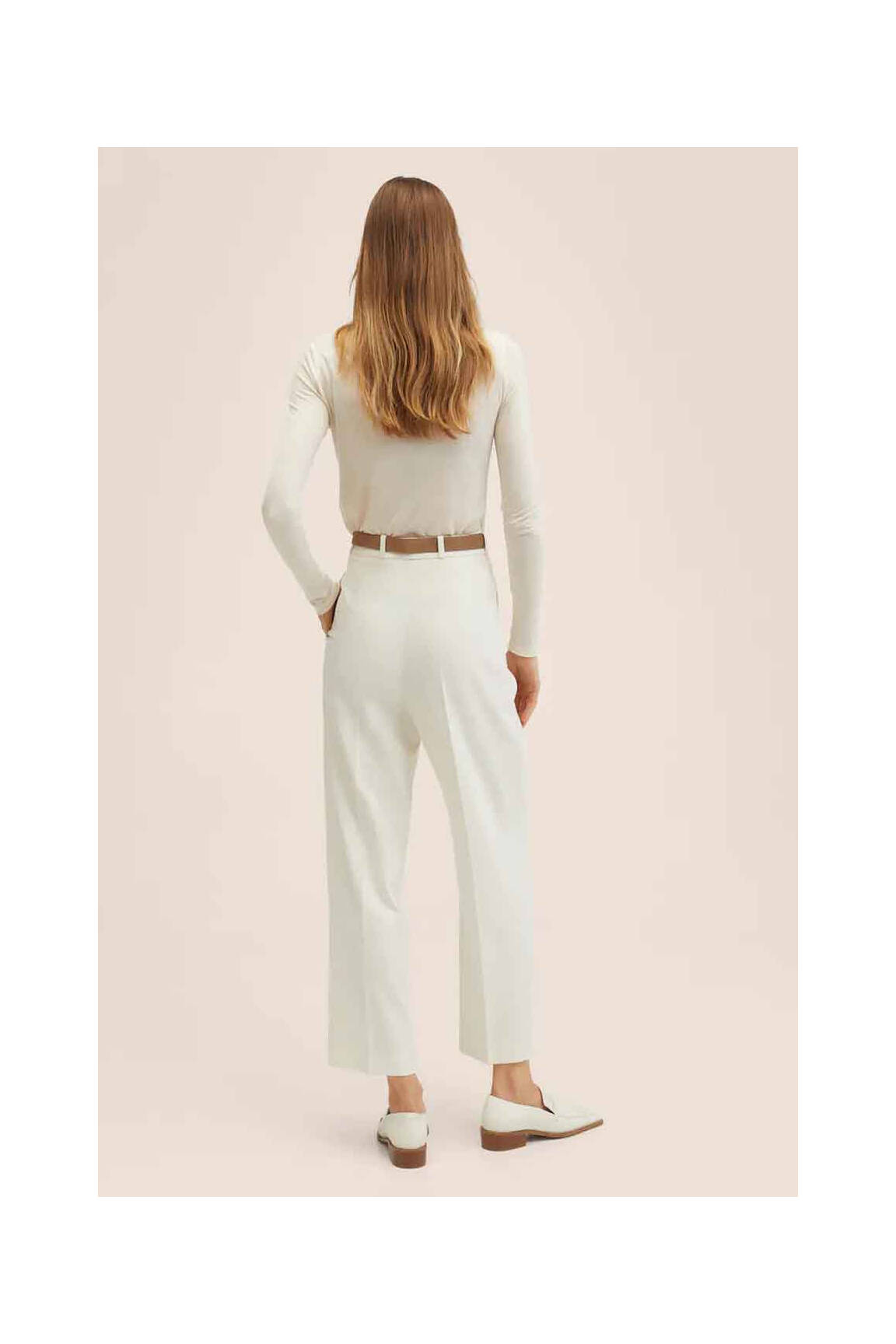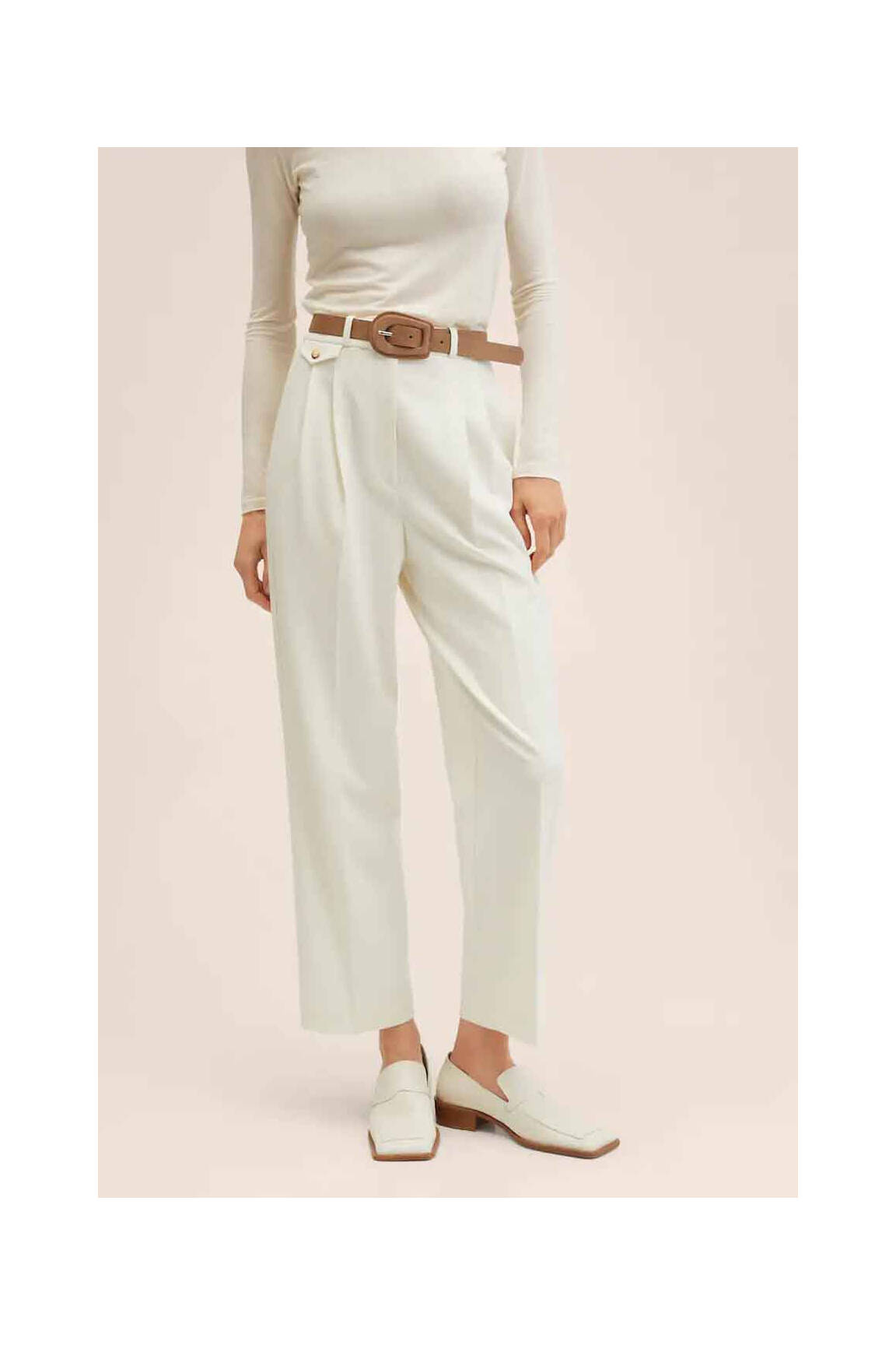 Pantalon Drept Mango Alb