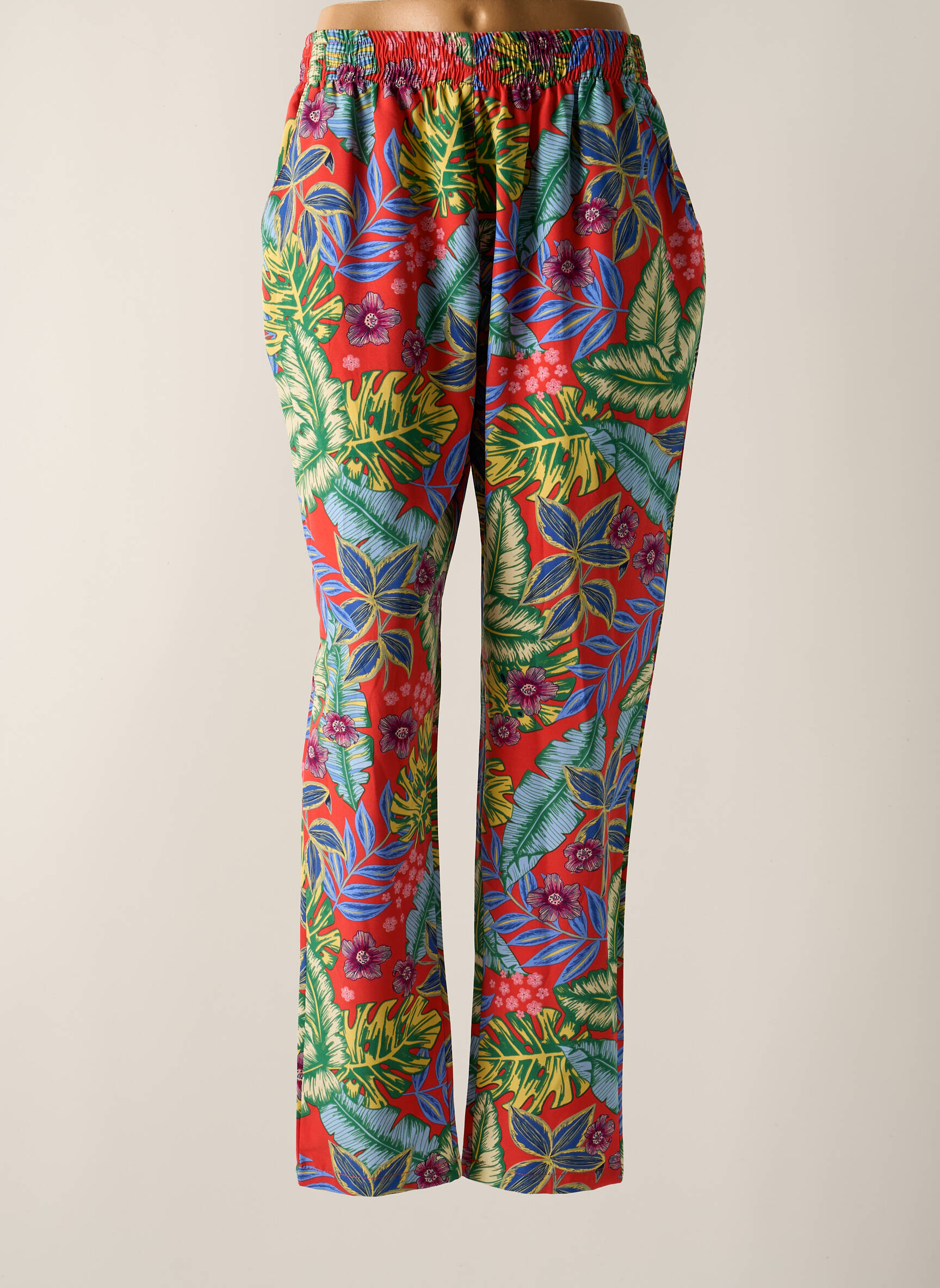 Pantalon Drept Rose Pomme Roșu Talie Înaltă