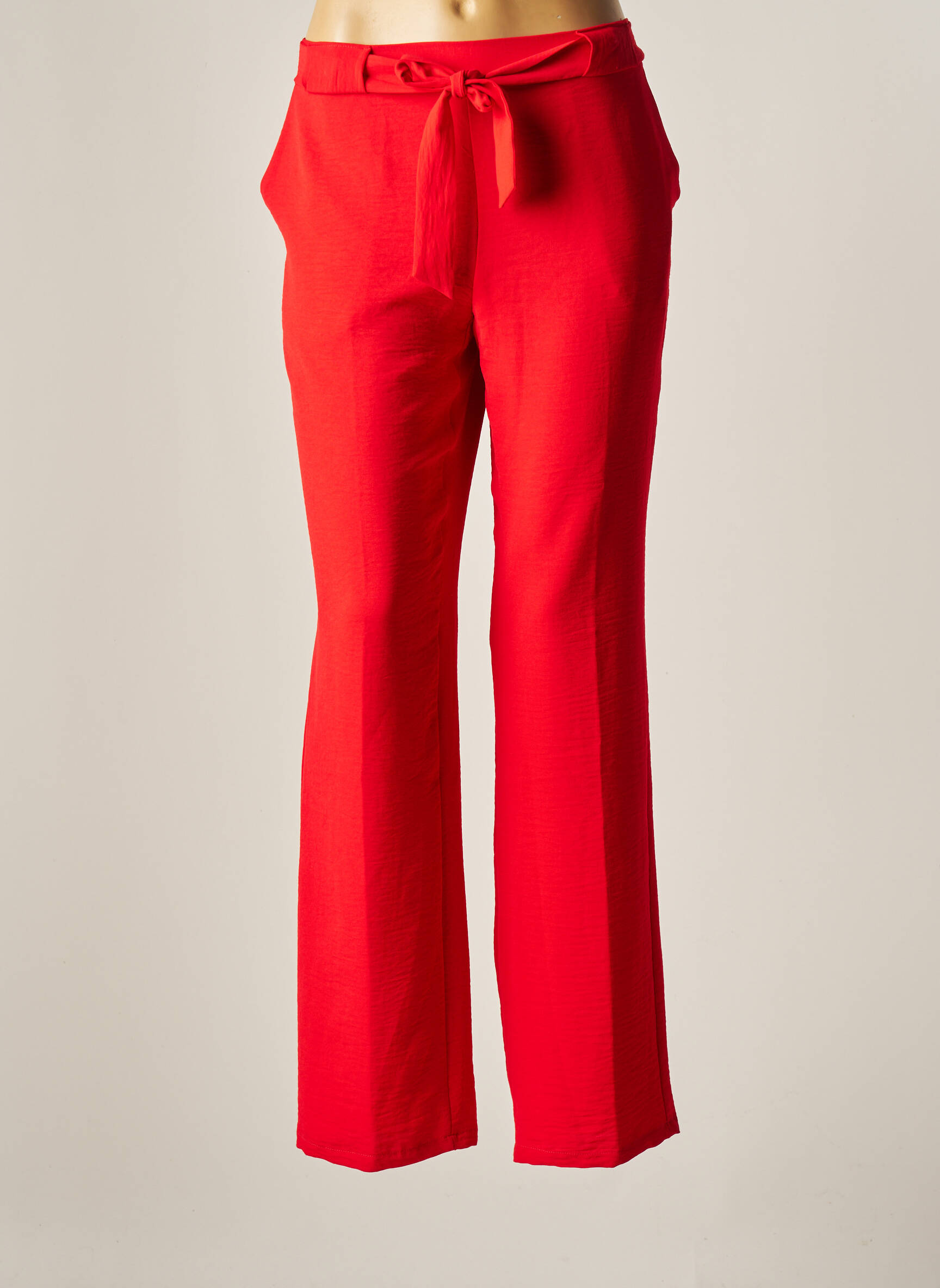 Pantalon Drept Tinta Style Roșu Talie Înaltă