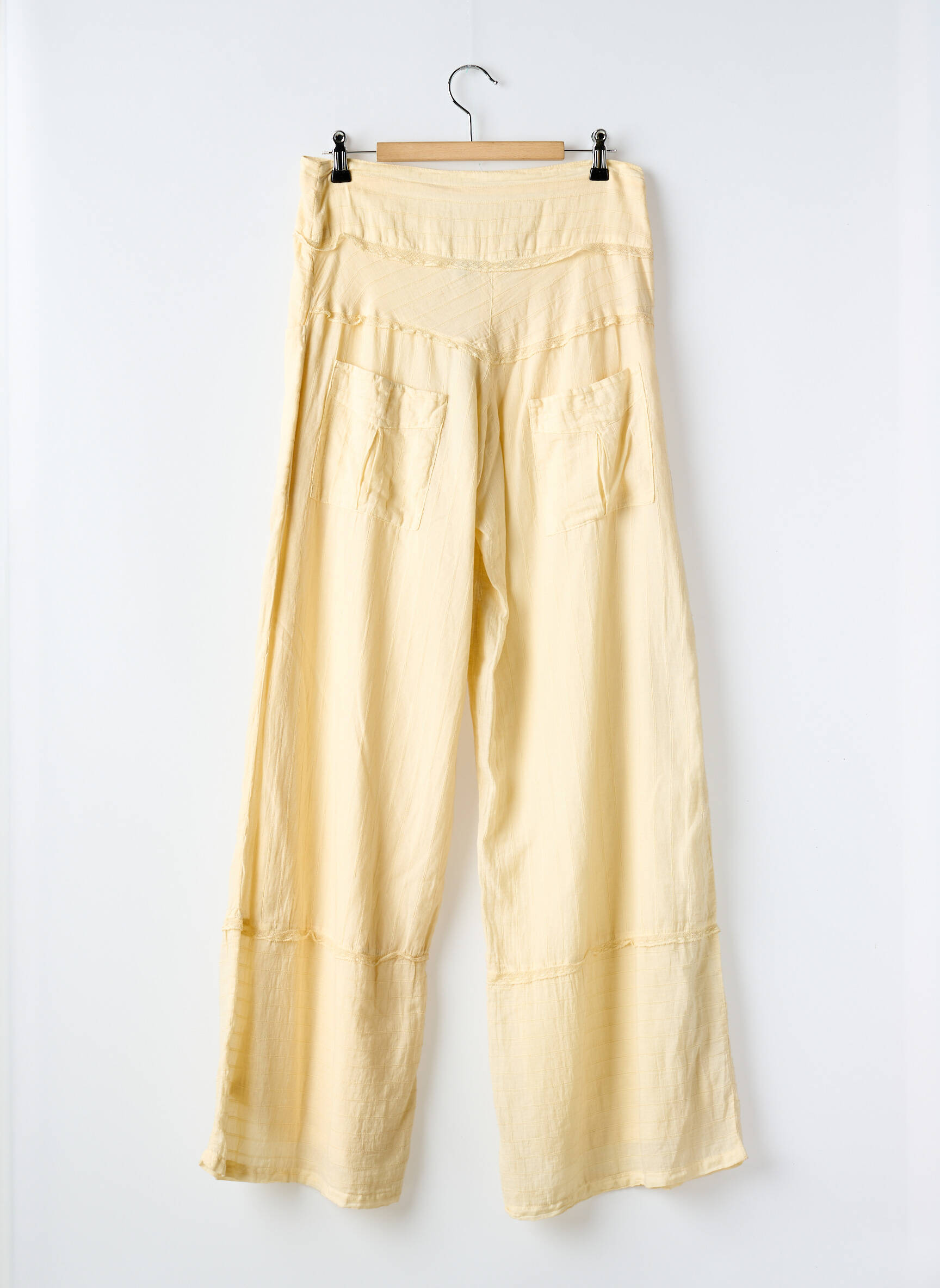 Pantalon Larg Bande Originale Bej Talie Înaltă