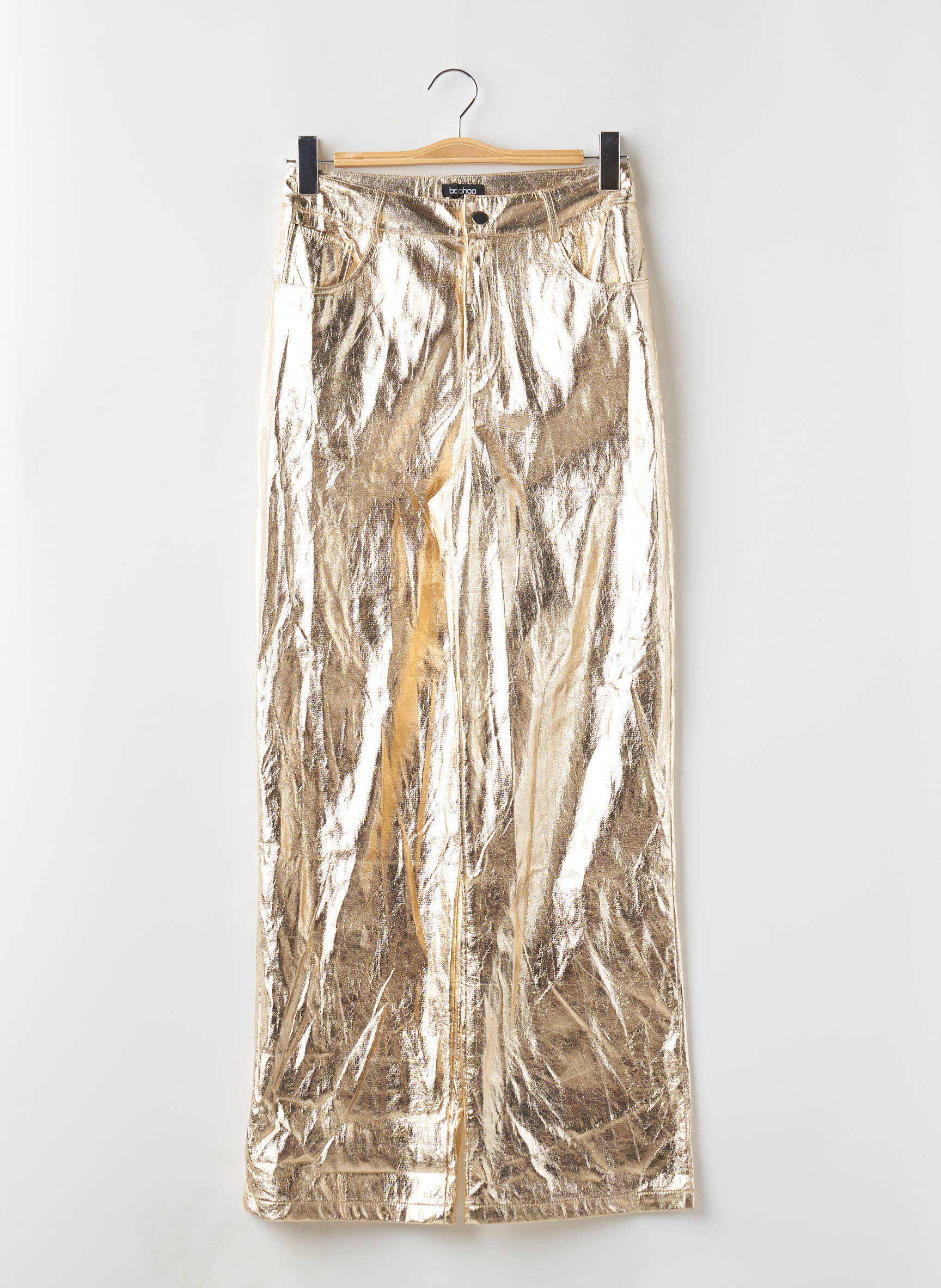 Pantalon Larg Boohoo Auriu Talie Înaltă