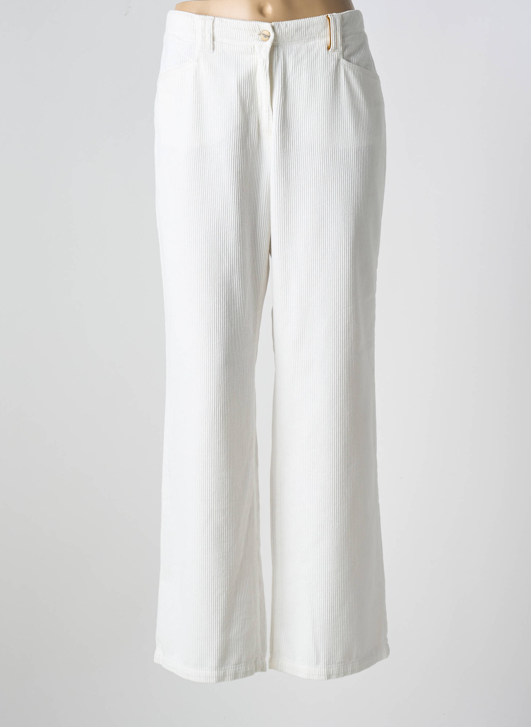 Pantalon Larg Couturist Alb Mărime Normală