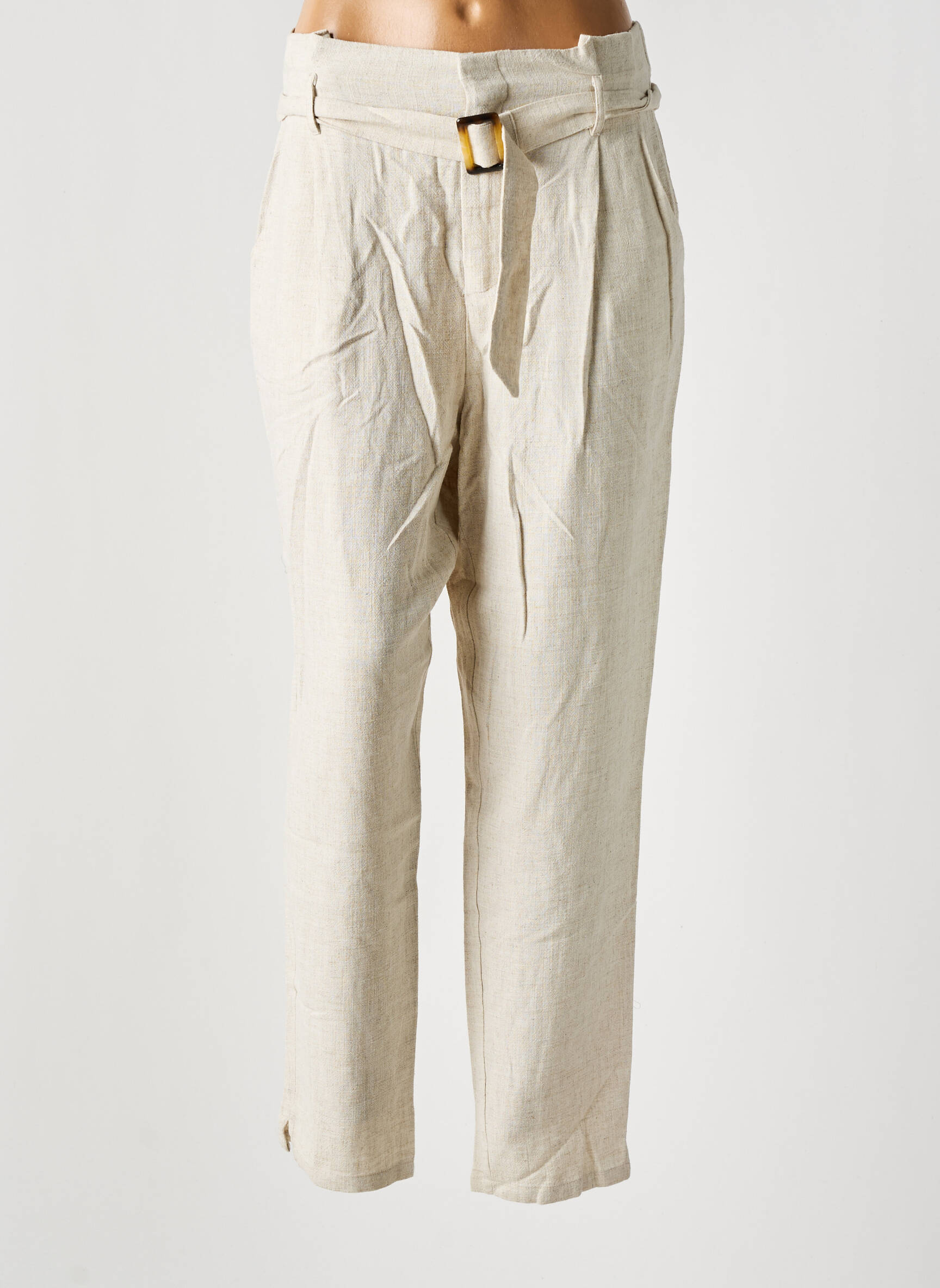 Pantalon Larg Saint Tropez Bej Talie Înaltă