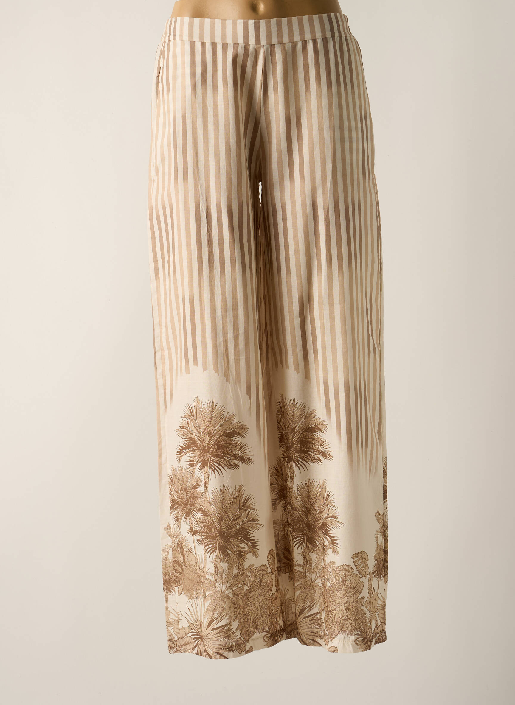 Pantalon Larg Senes Bej Talie Înaltă