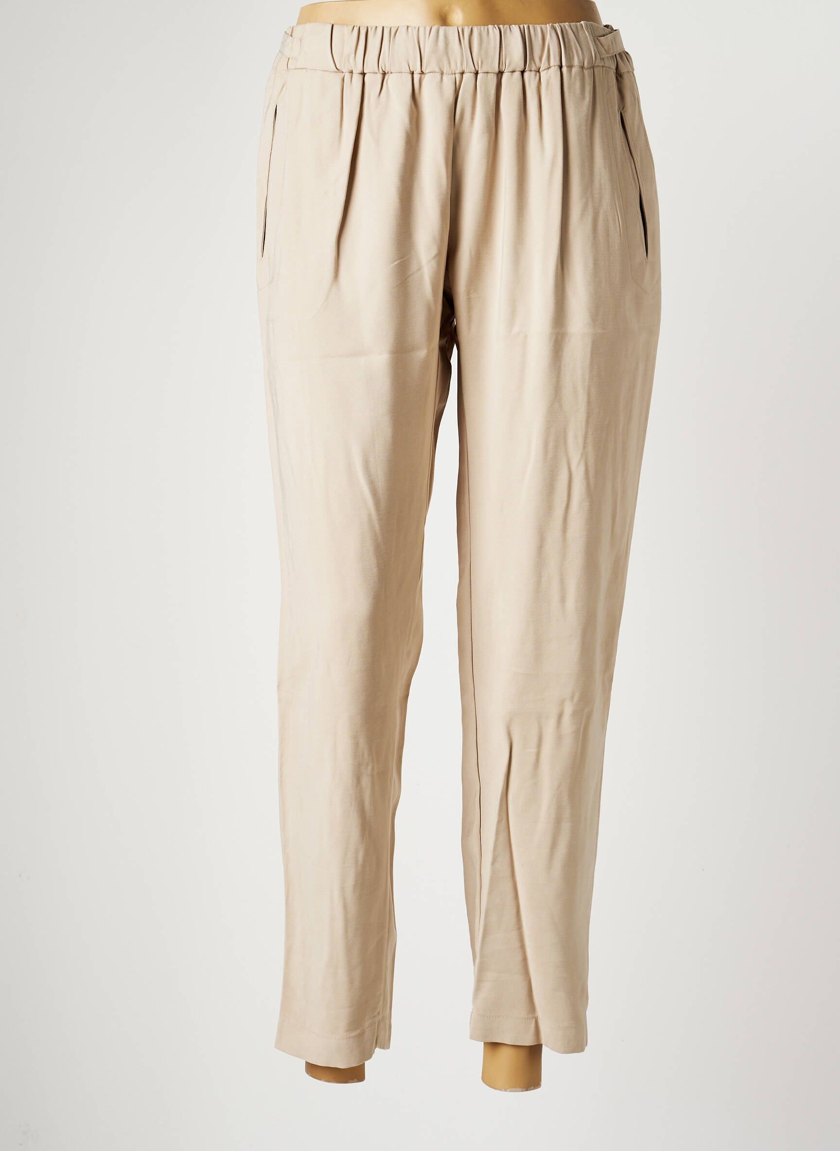 Pantalon Slim Ams Pure Bej Talie Înaltă