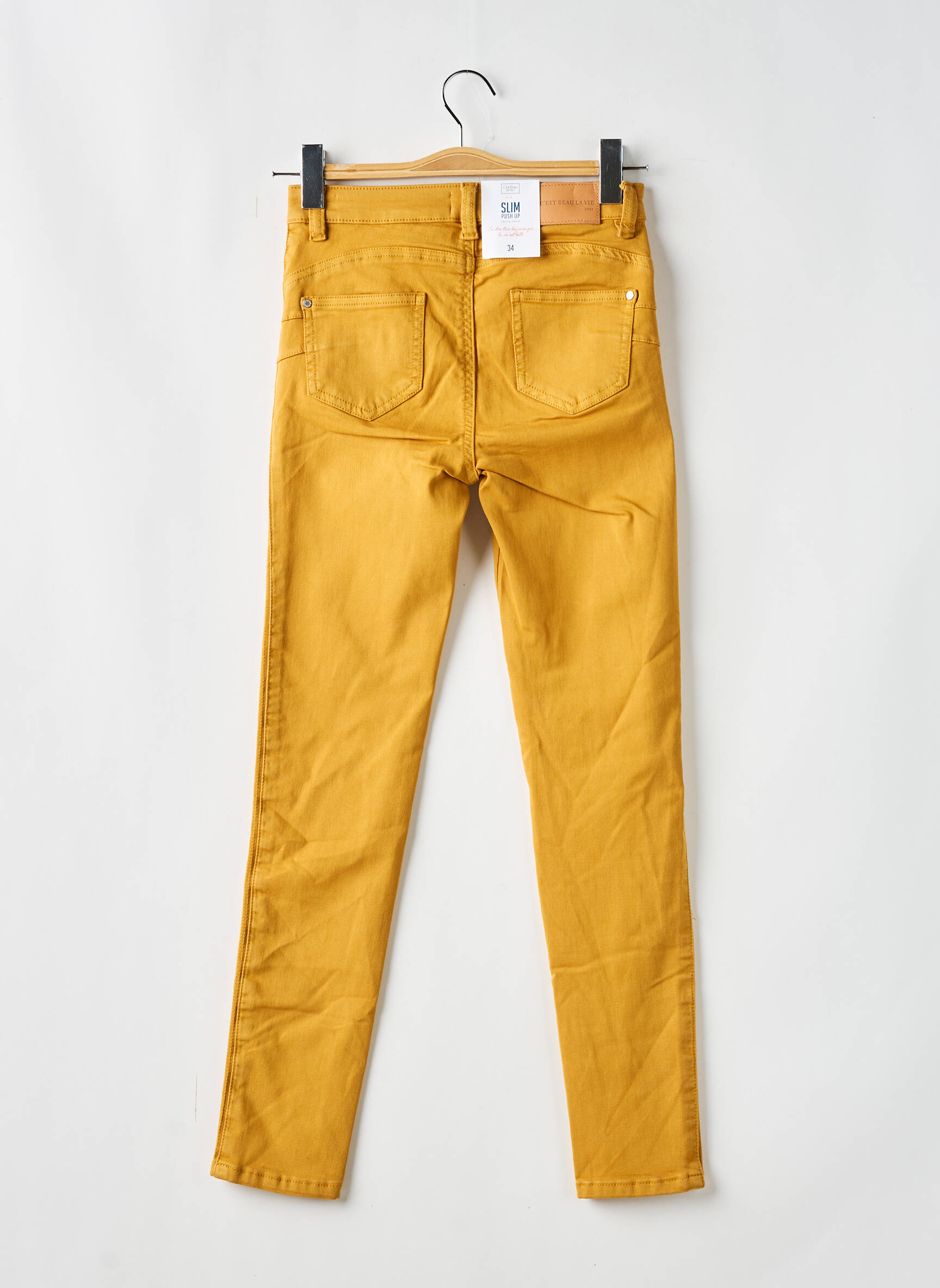 Pantalon Slim C'est Beau La Vie Galben Talie Înaltă