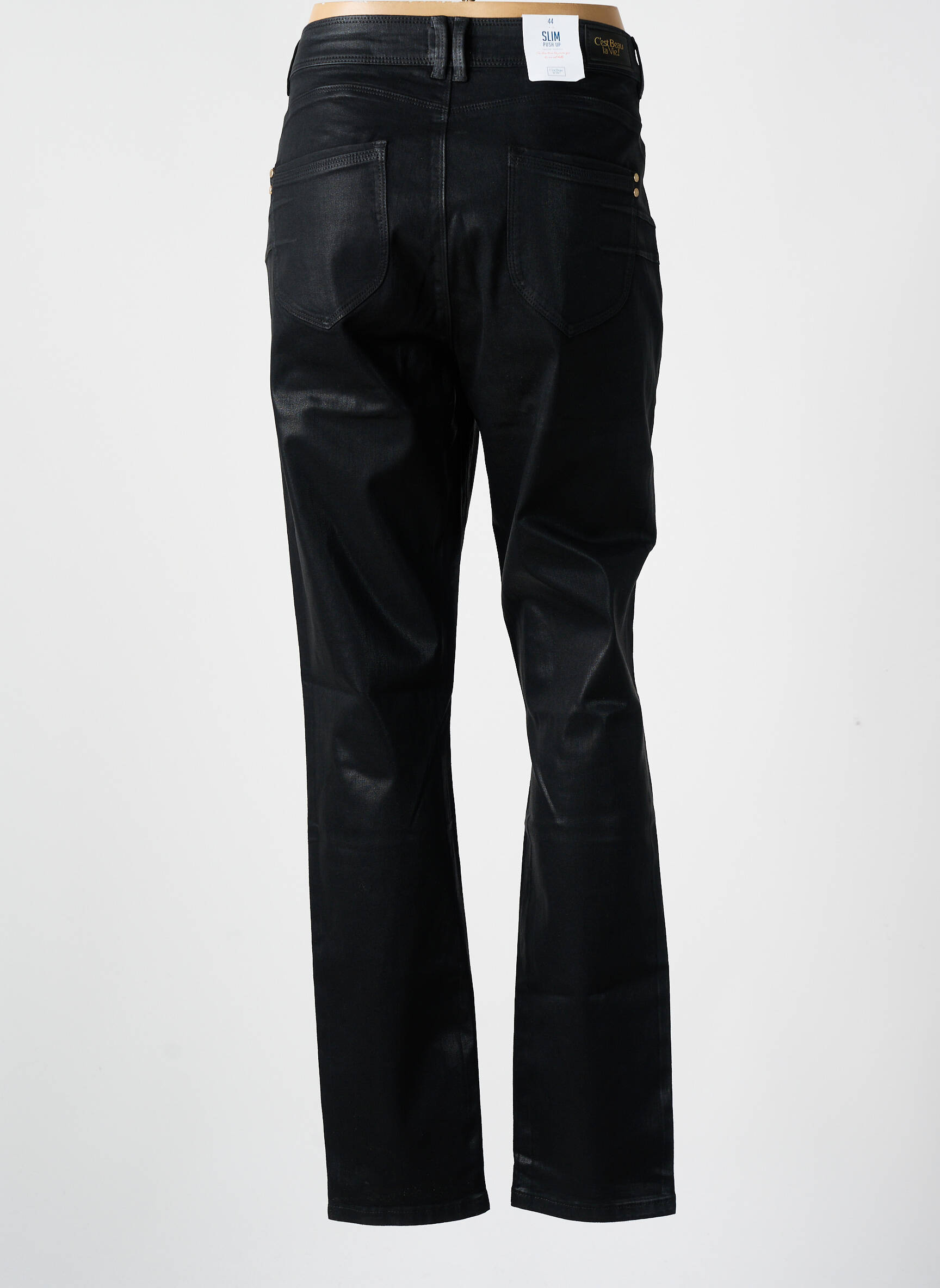 Pantalon Slim C'est Beau La Vie Negru Mărime Normală
