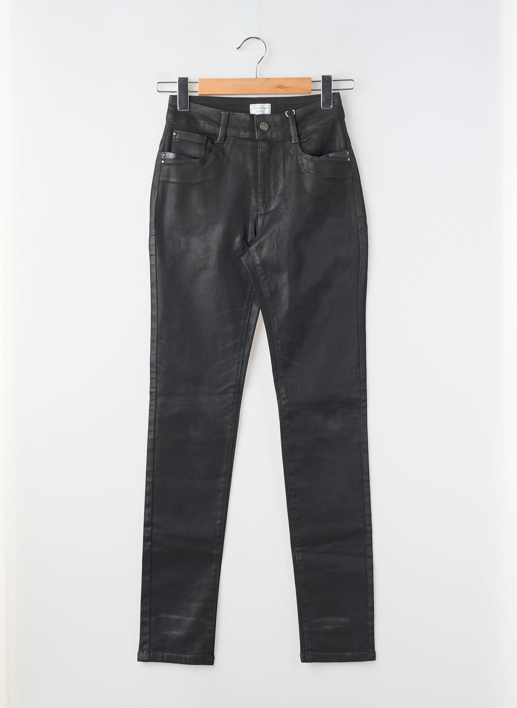 Pantalon Slim C'est Beau La Vie Negru Mărime Normală