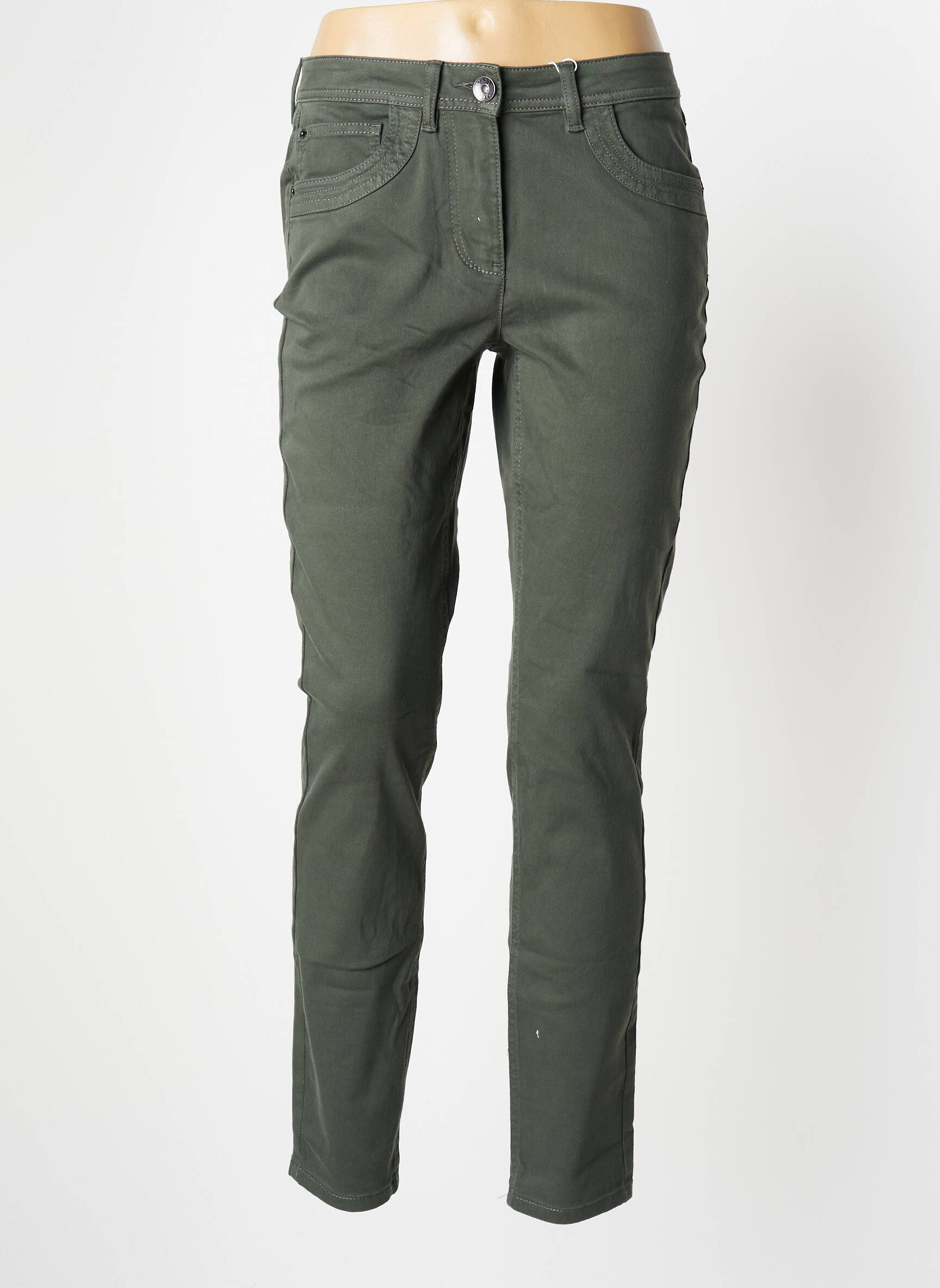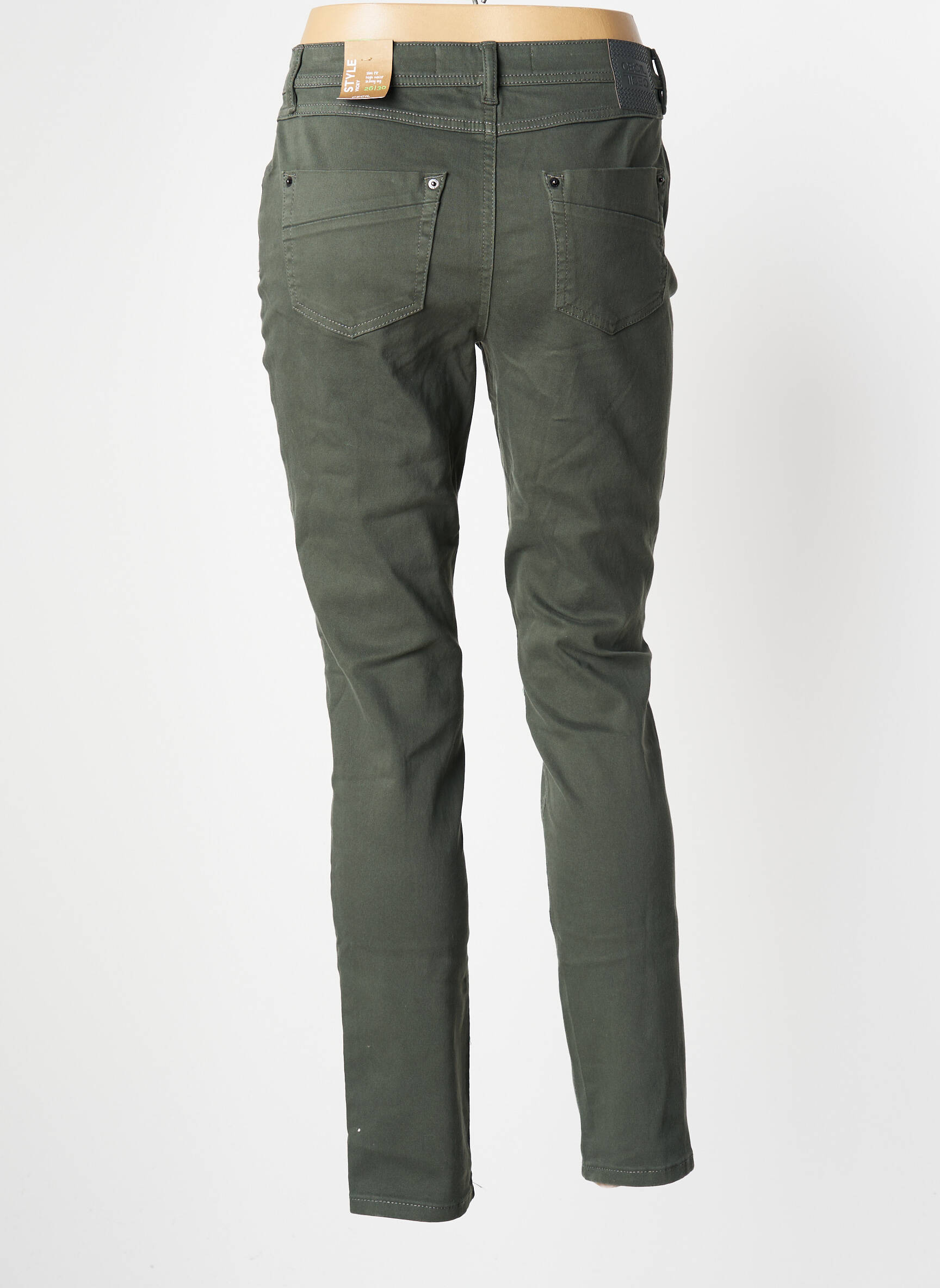 Pantalon Slim Cecil Verde Talie Înaltă