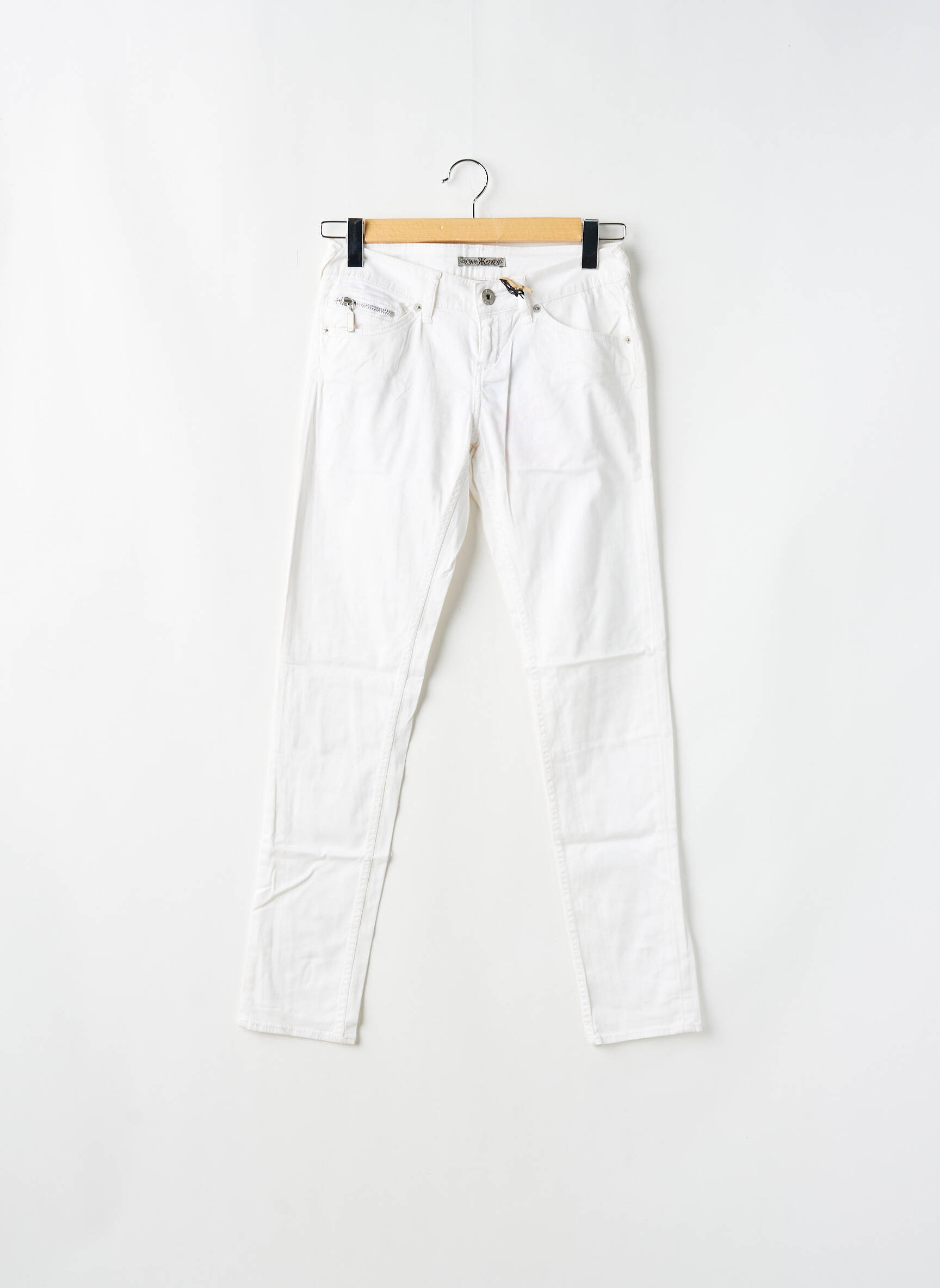 Pantalon Slim Ddp Alb Talie Joasă
