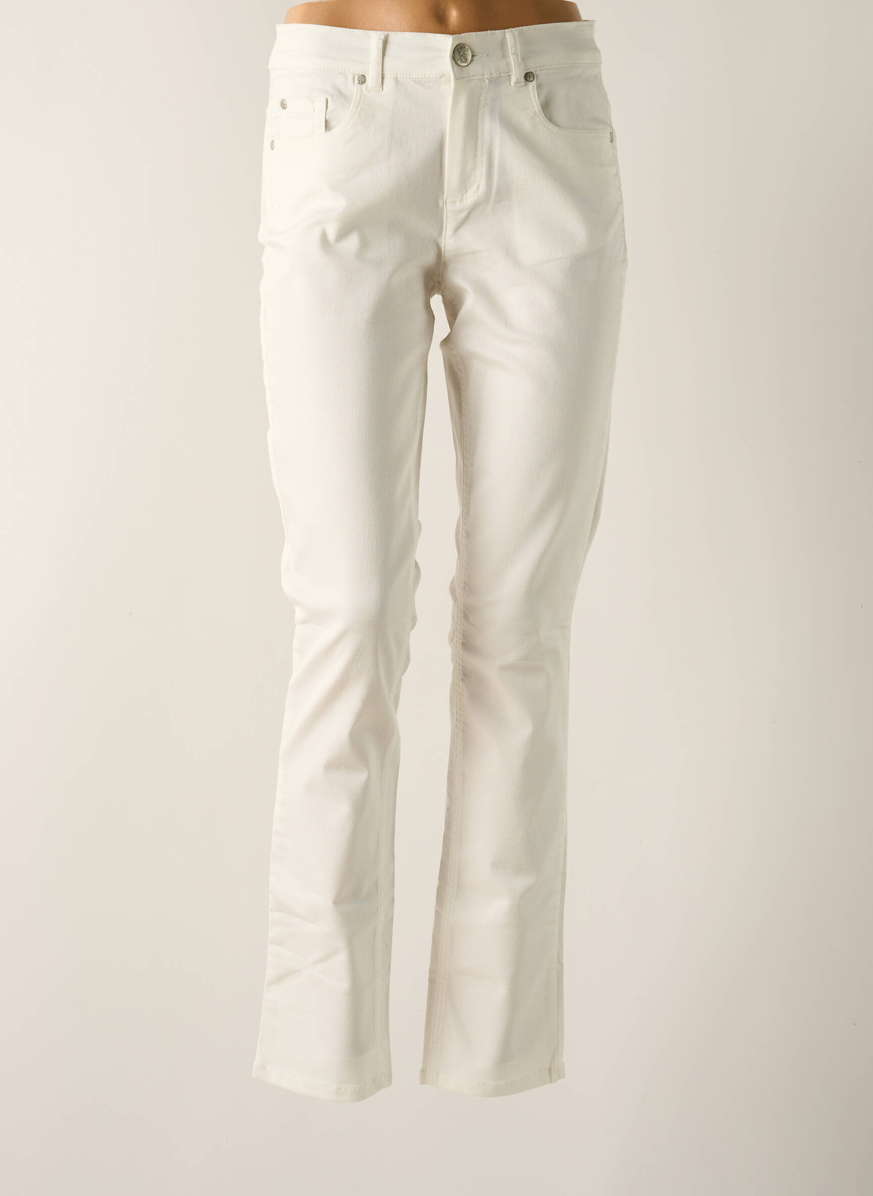 Pantalon Slim Enjoy Alb Talie Înaltă