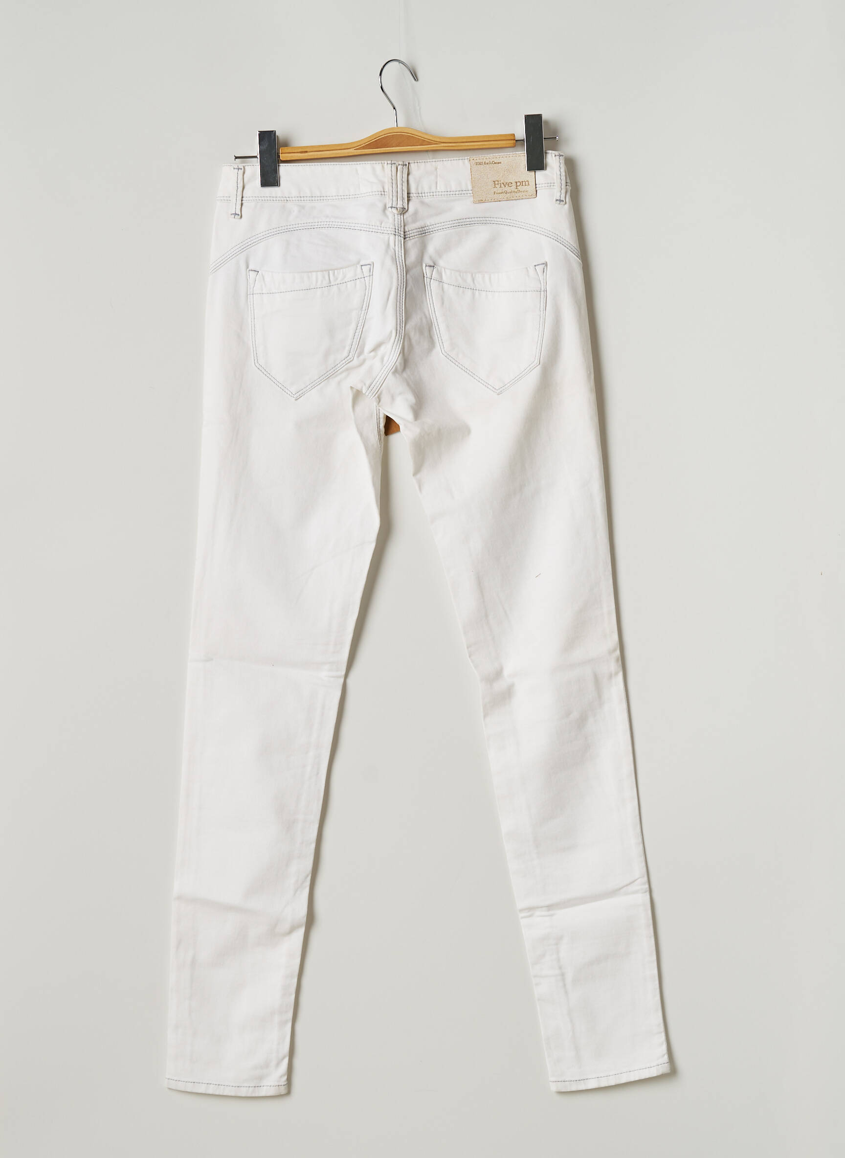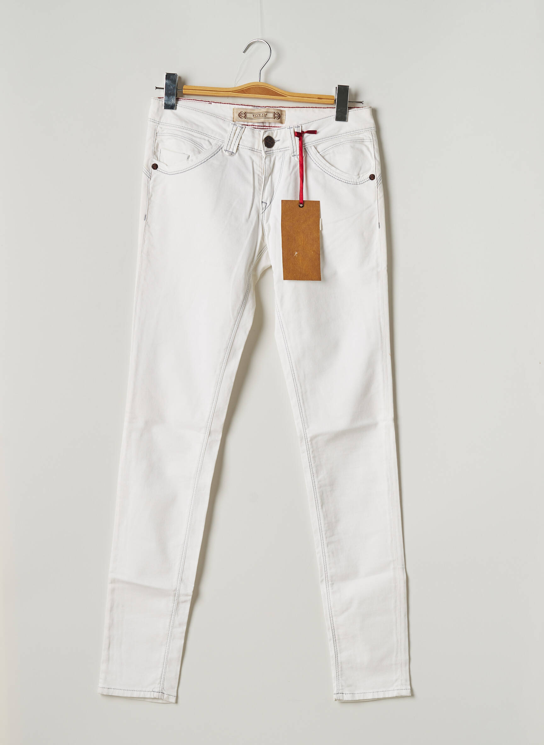 Pantalon Slim Five Pm Alb Talie Joasă
