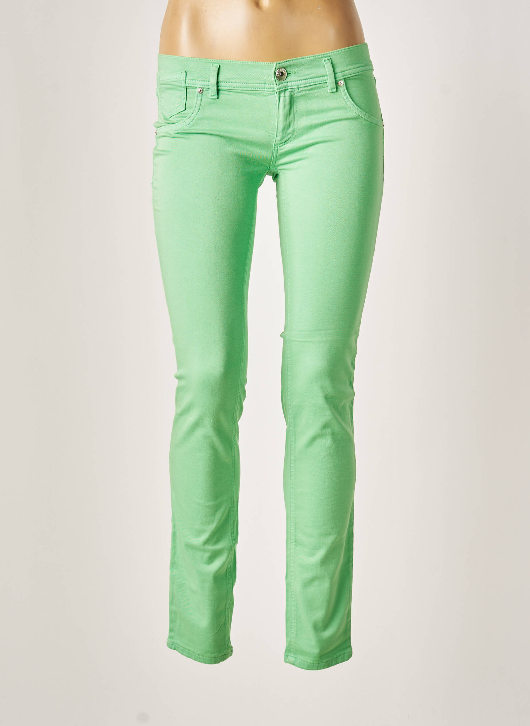 Pantalon Slim Freesoul Verde Talie Joasă
