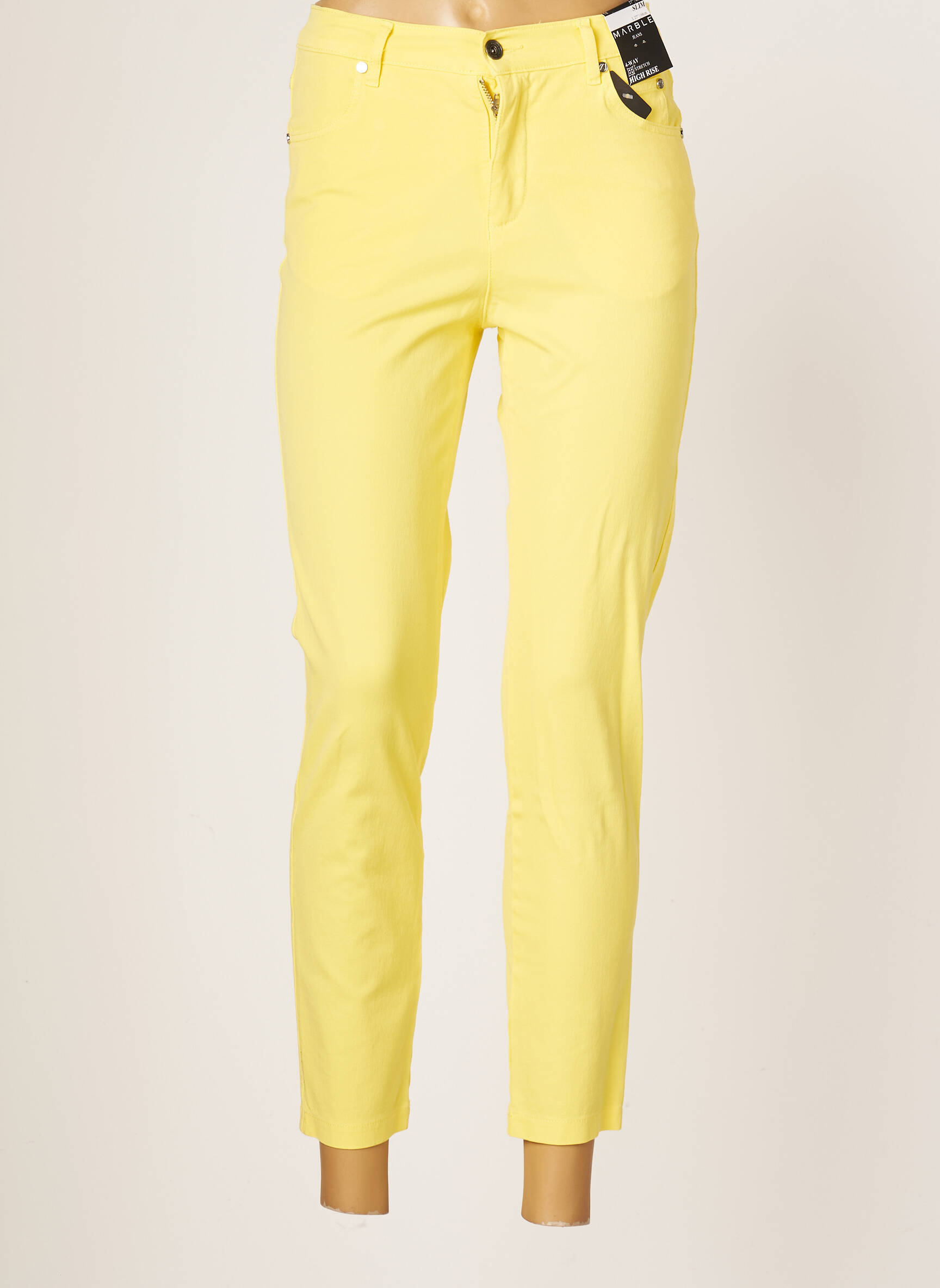 Pantalon Slim Marble Galben Talie Înaltă