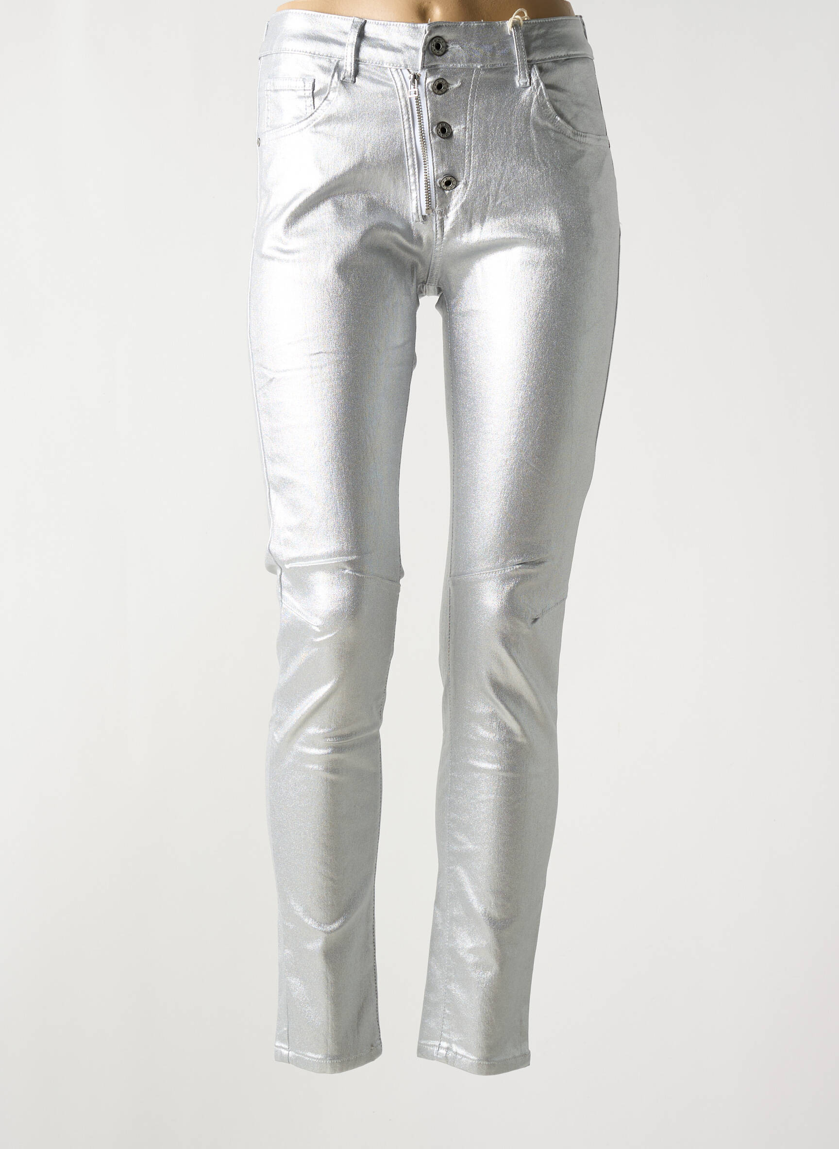 Pantalon Slim Melly & Co Argintiu Talie Înaltă