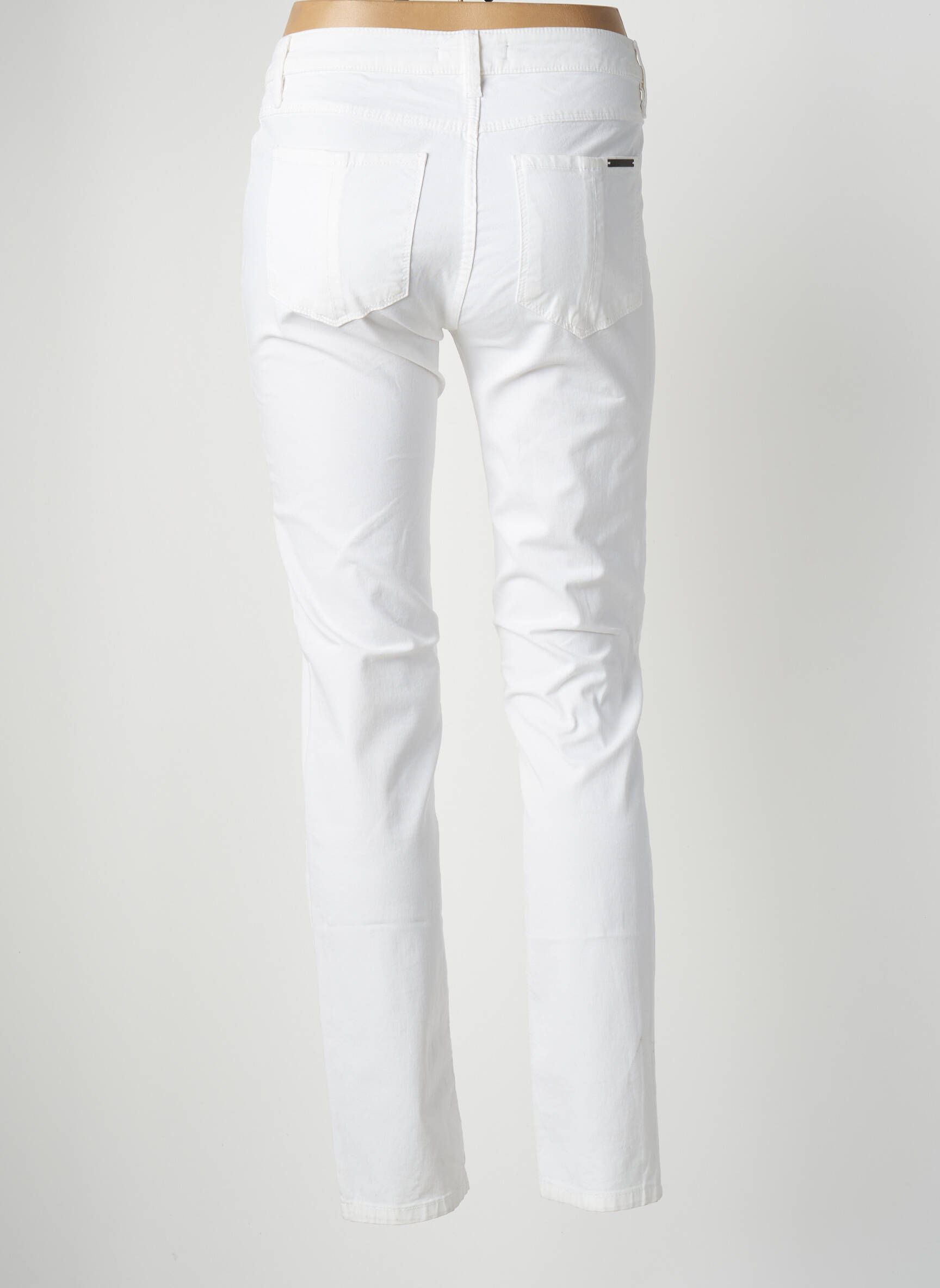 Pantalon Slim Poles Alb Talie Joasă
