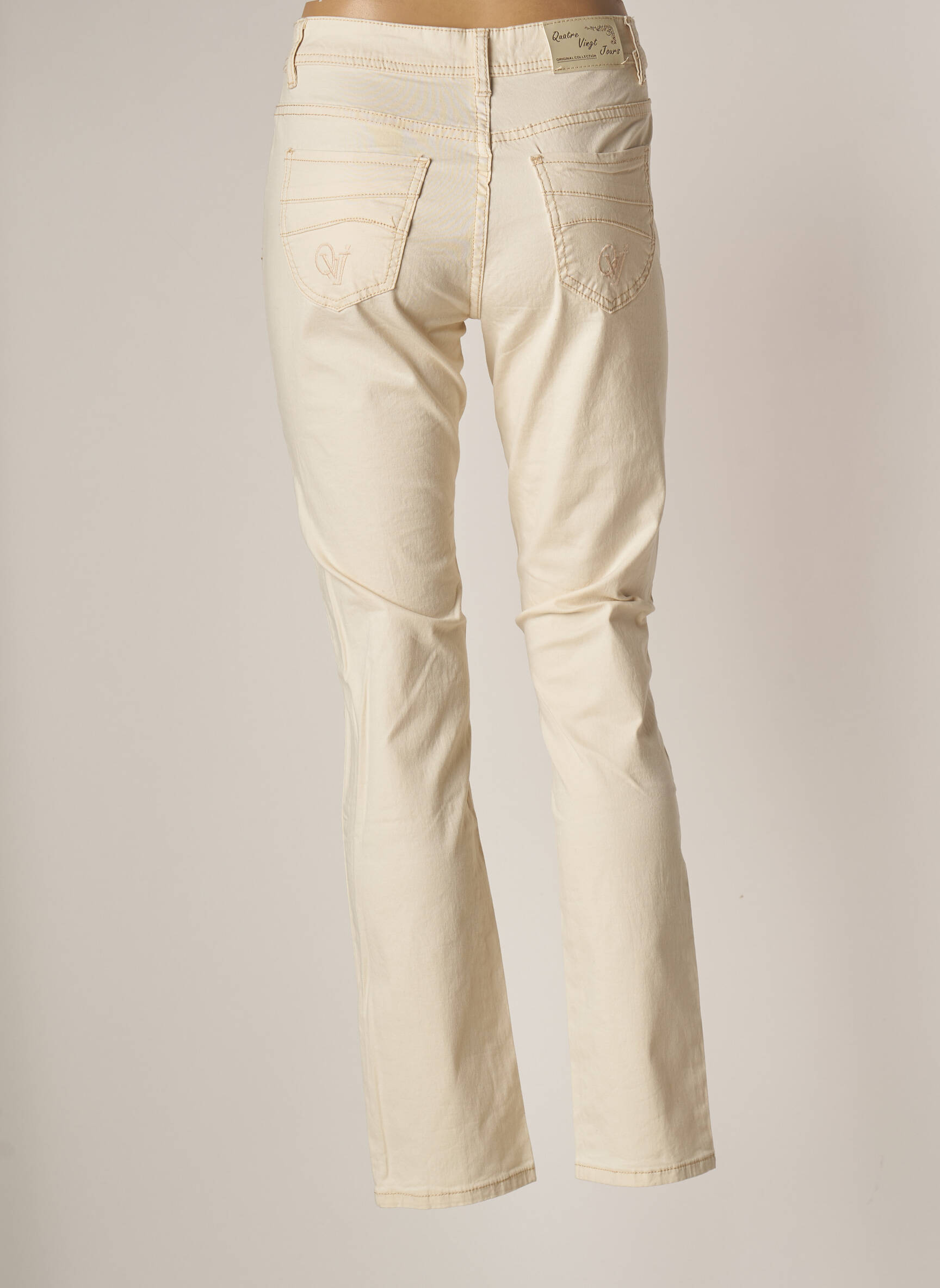 Pantalon Slim Quatre Vingt Jours Bej Mărime Normală