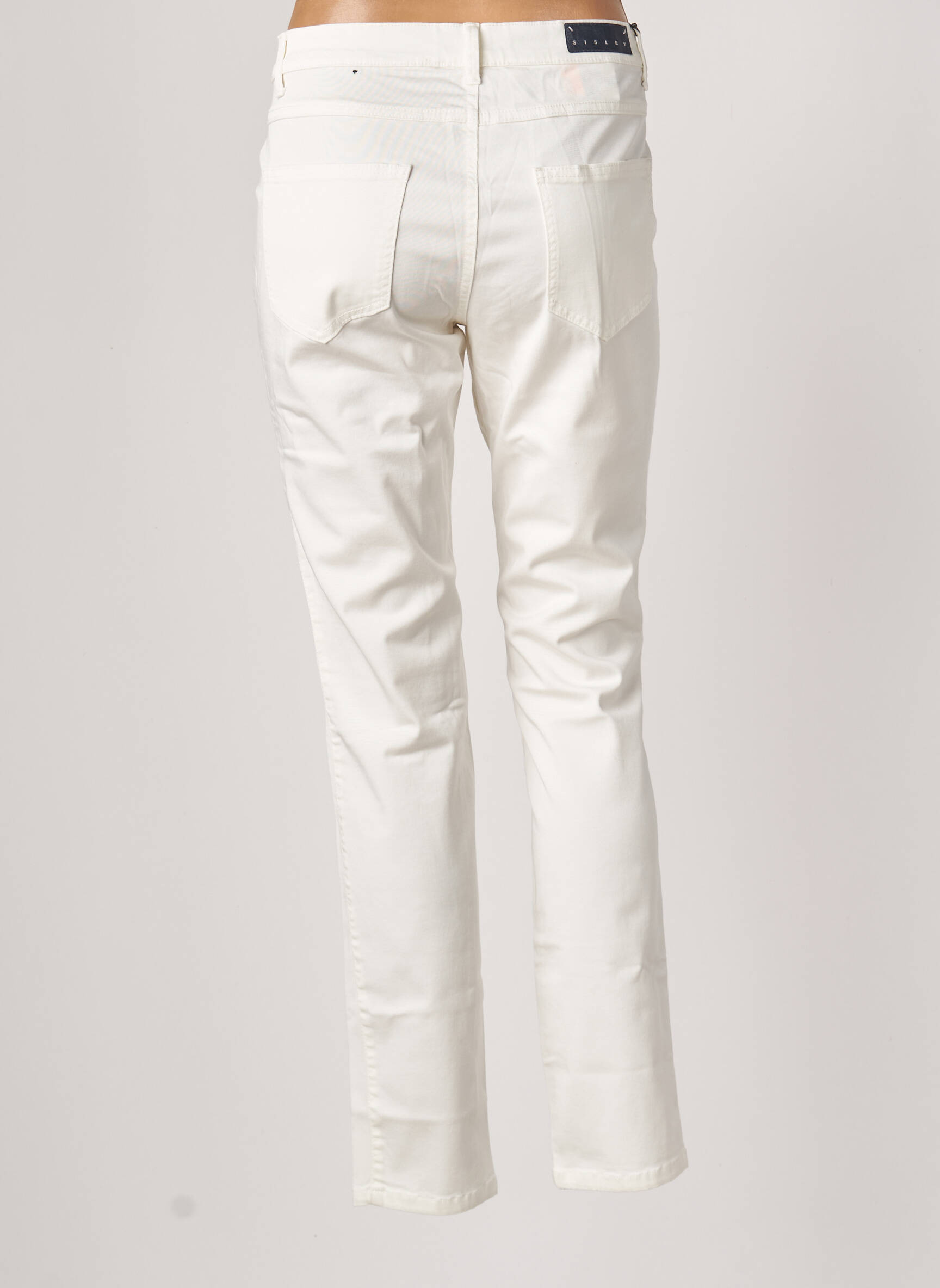 Pantalon Slim Sisley Alb Talie Joasă