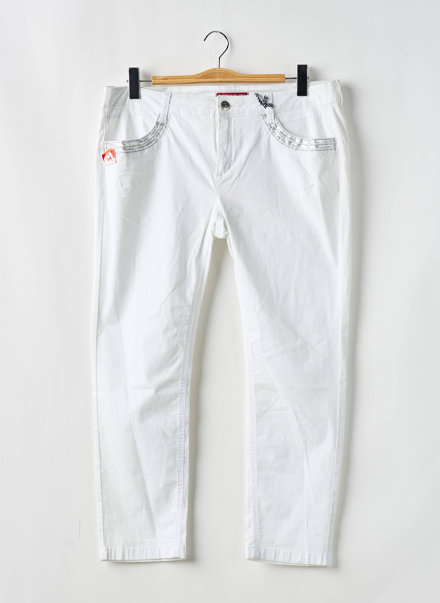 Pantalon Slim Street One Alb Talie Joasă
