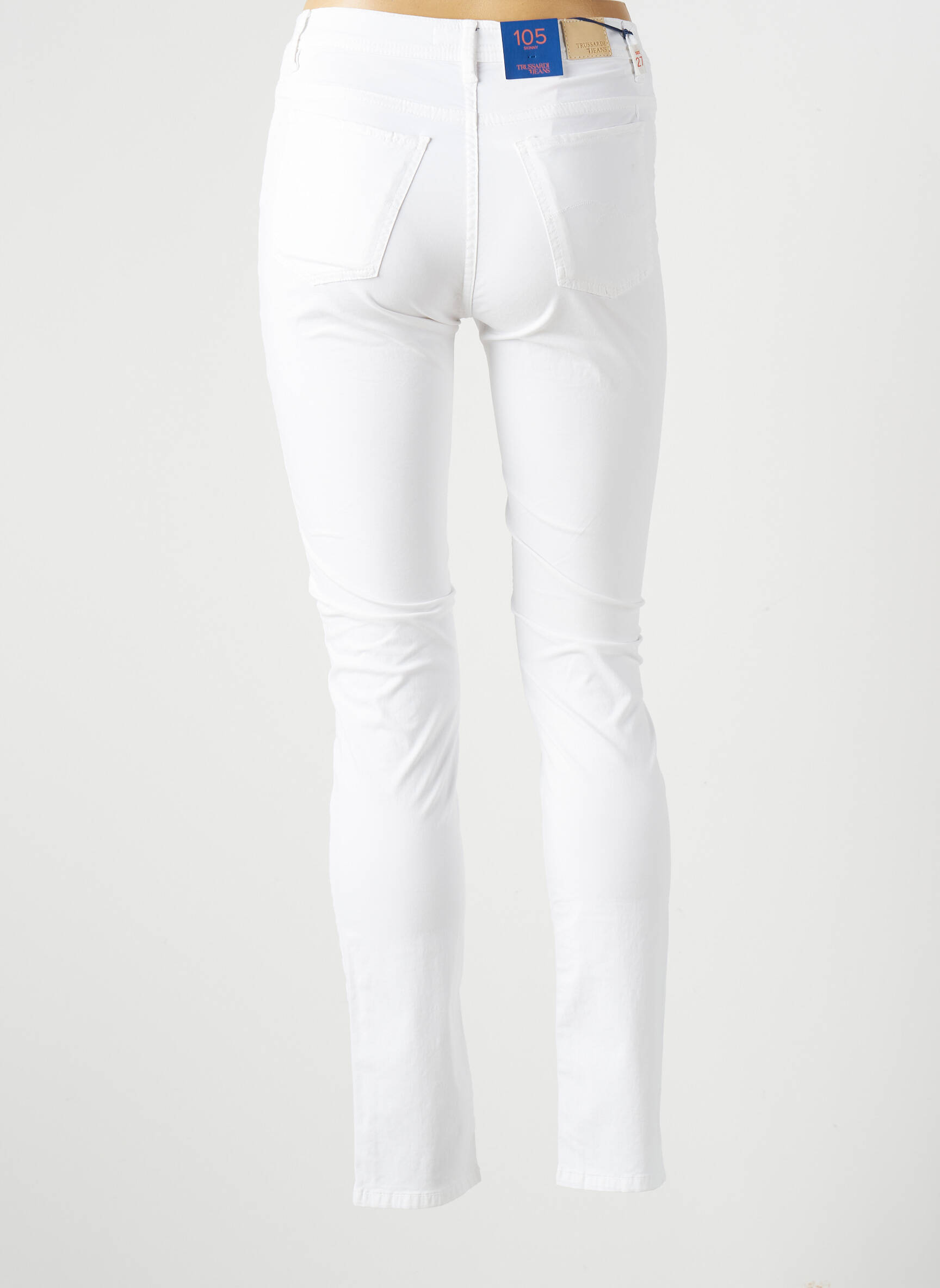 Pantalon Slim Trussardi Jeans Alb Talie Joasă