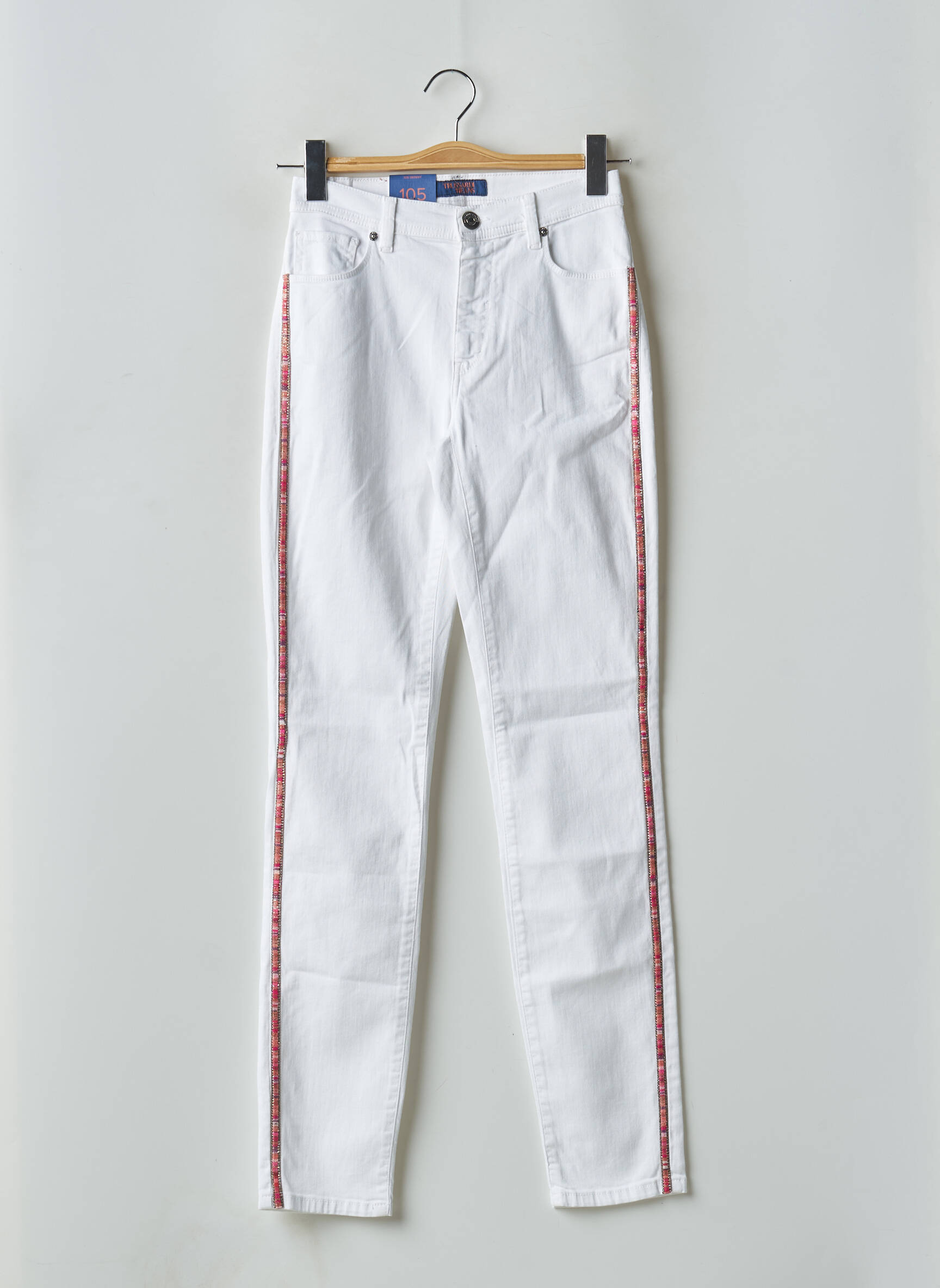Pantalon Slim Trussardi Jeans Alb Talie Înaltă