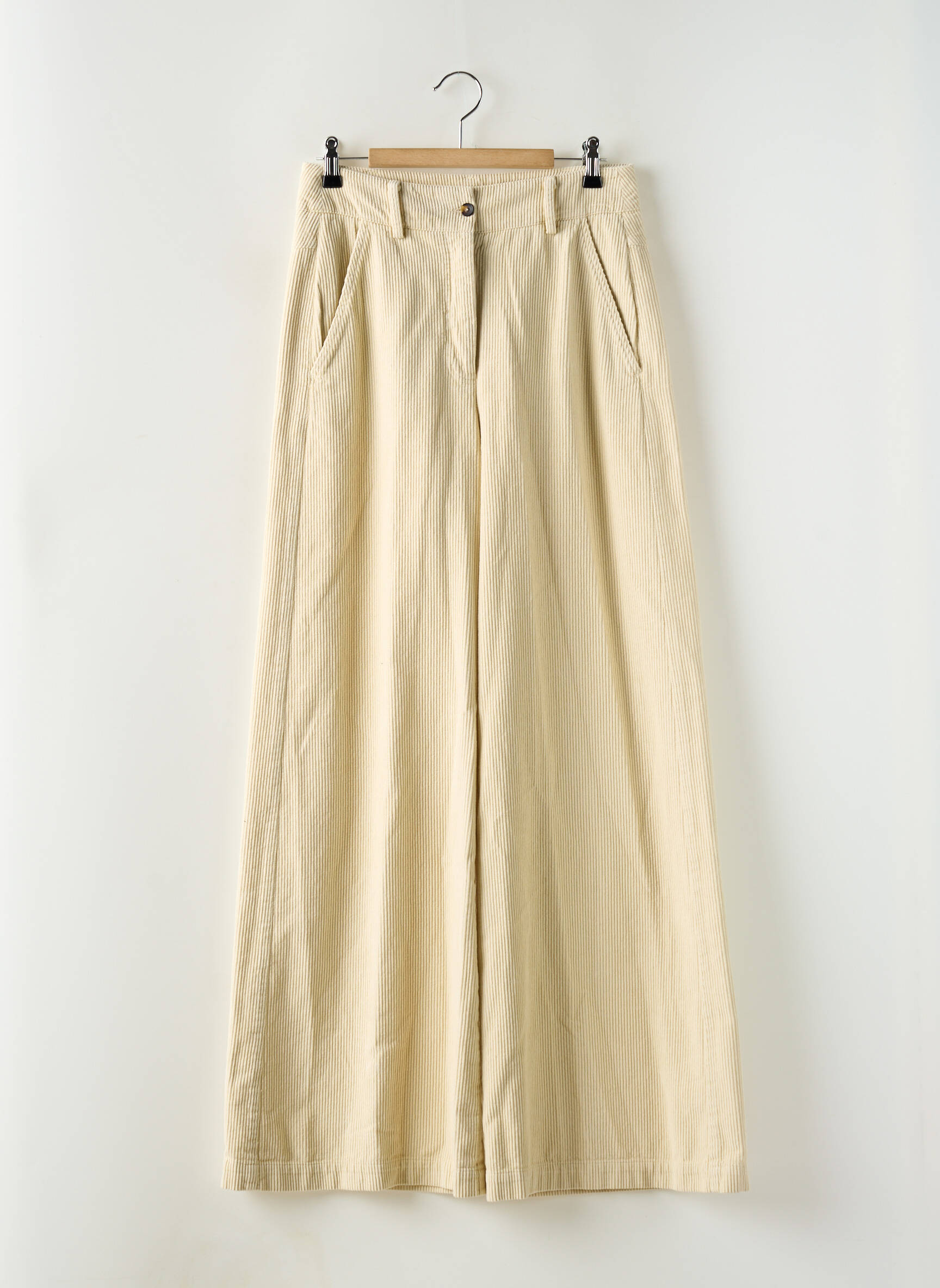 Pantalon Evazat Diega Bej Talie Înaltă