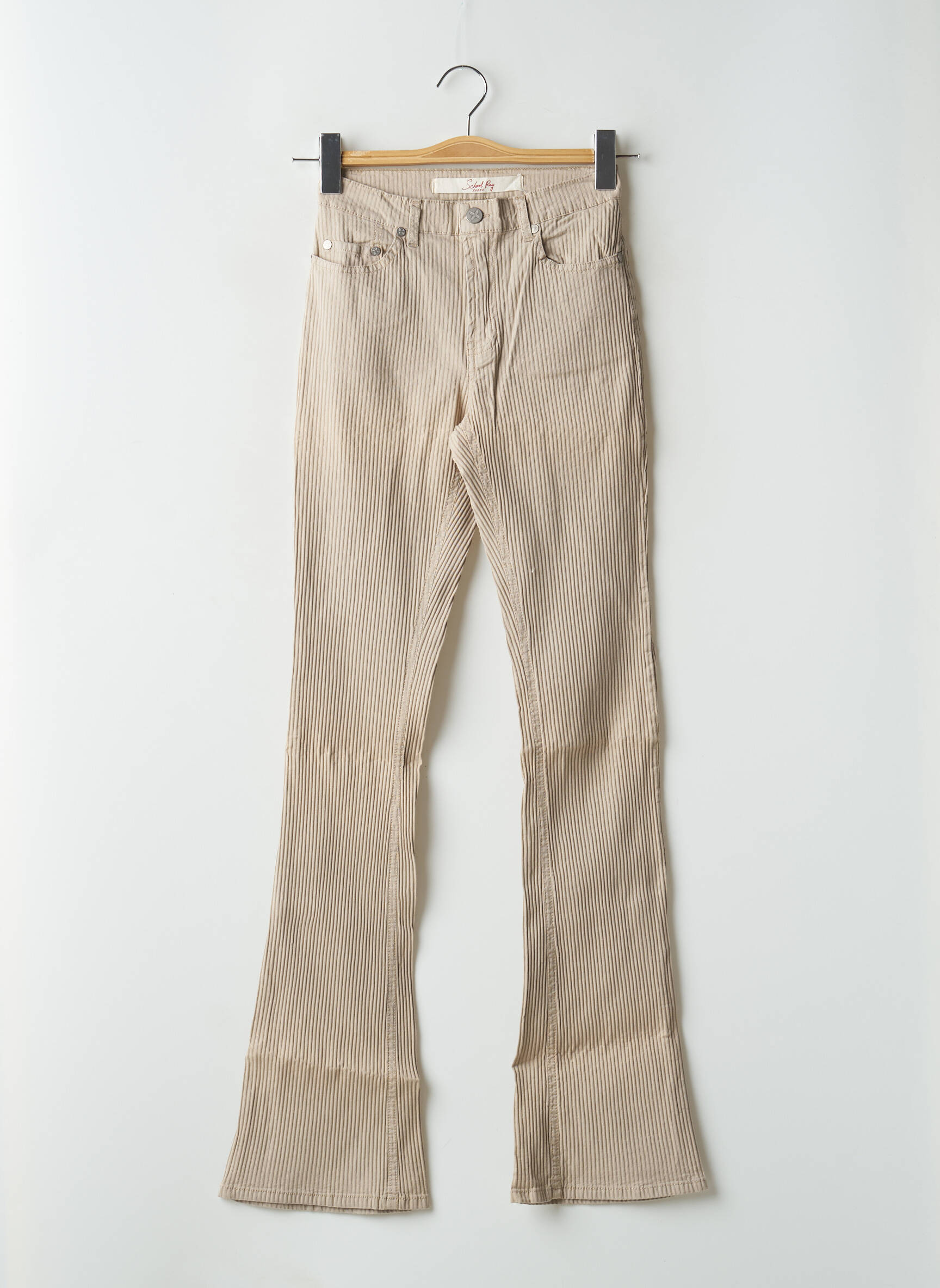 Pantalon Evazat School Rag Bej Talie Înaltă