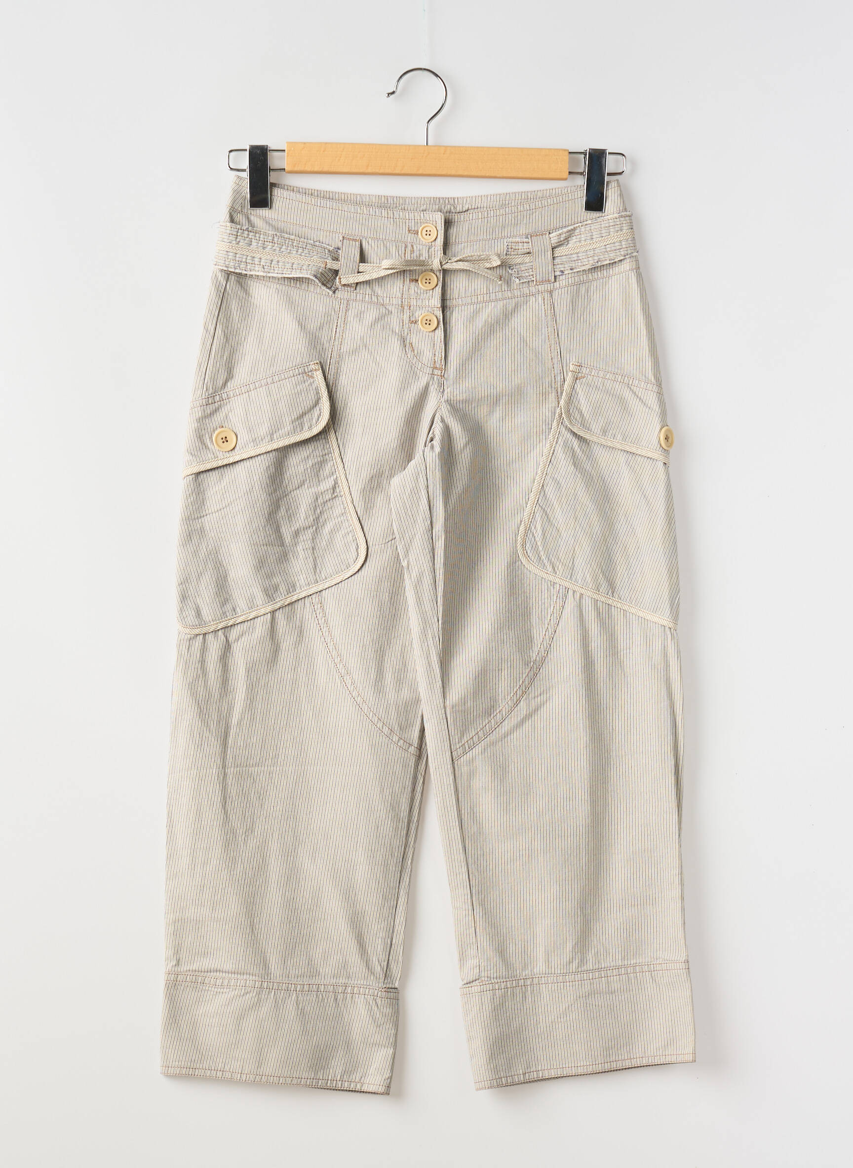 Pantalon Trei Sferturi Bande Originale Bej Mărime Normală