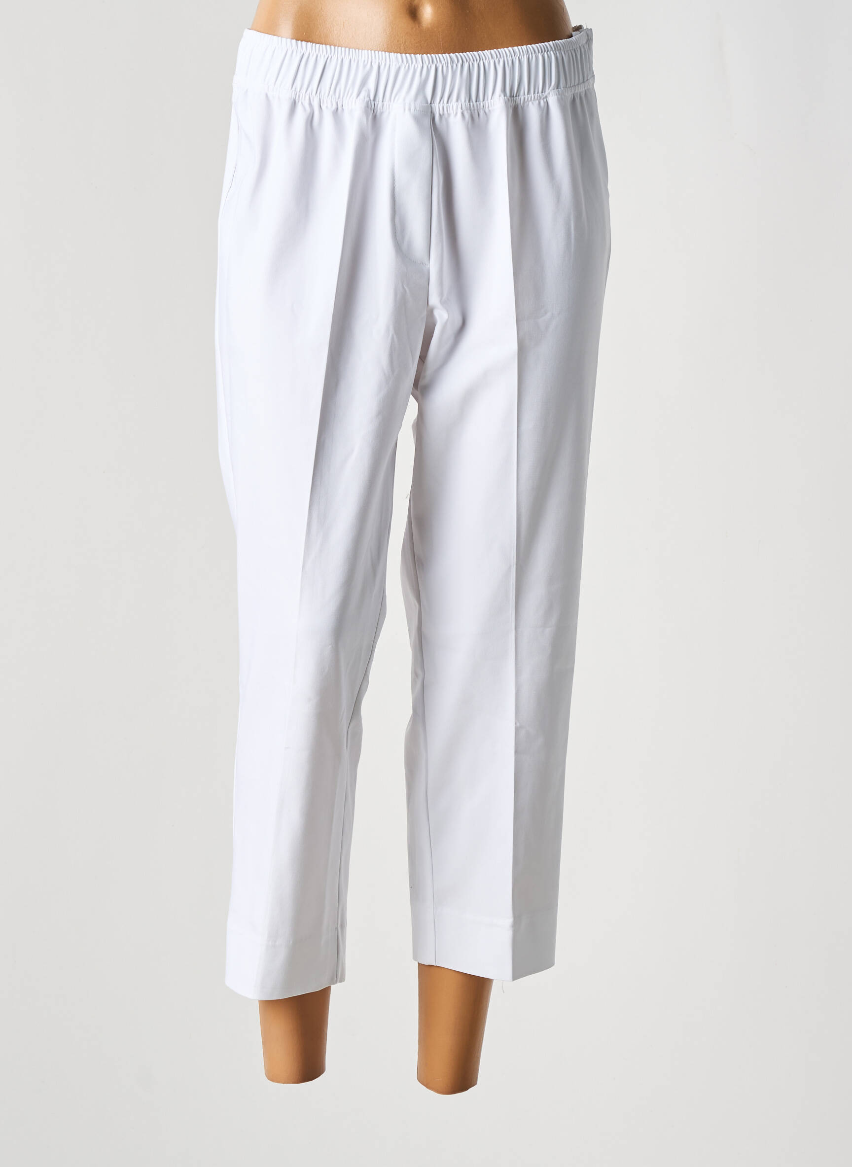 Pantalon Trei Sferturi Mat. Alb Talie Înaltă