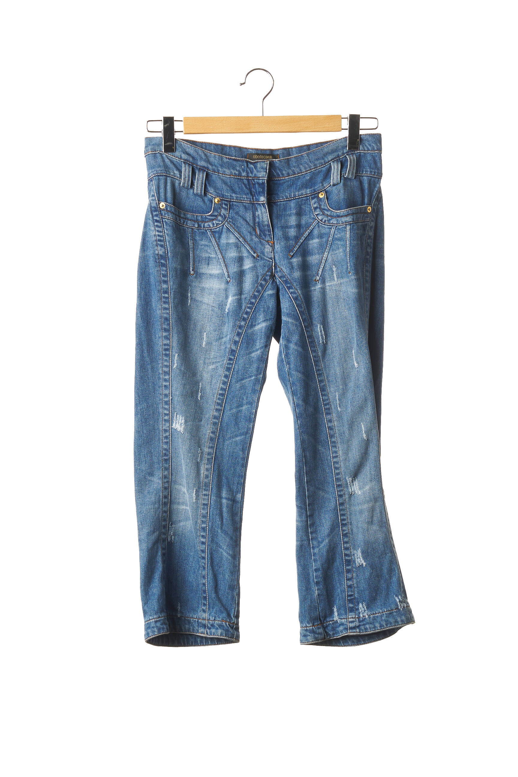 Pantalon Trei Sferturi Roberto Cavalli Albastru Talie Joasă