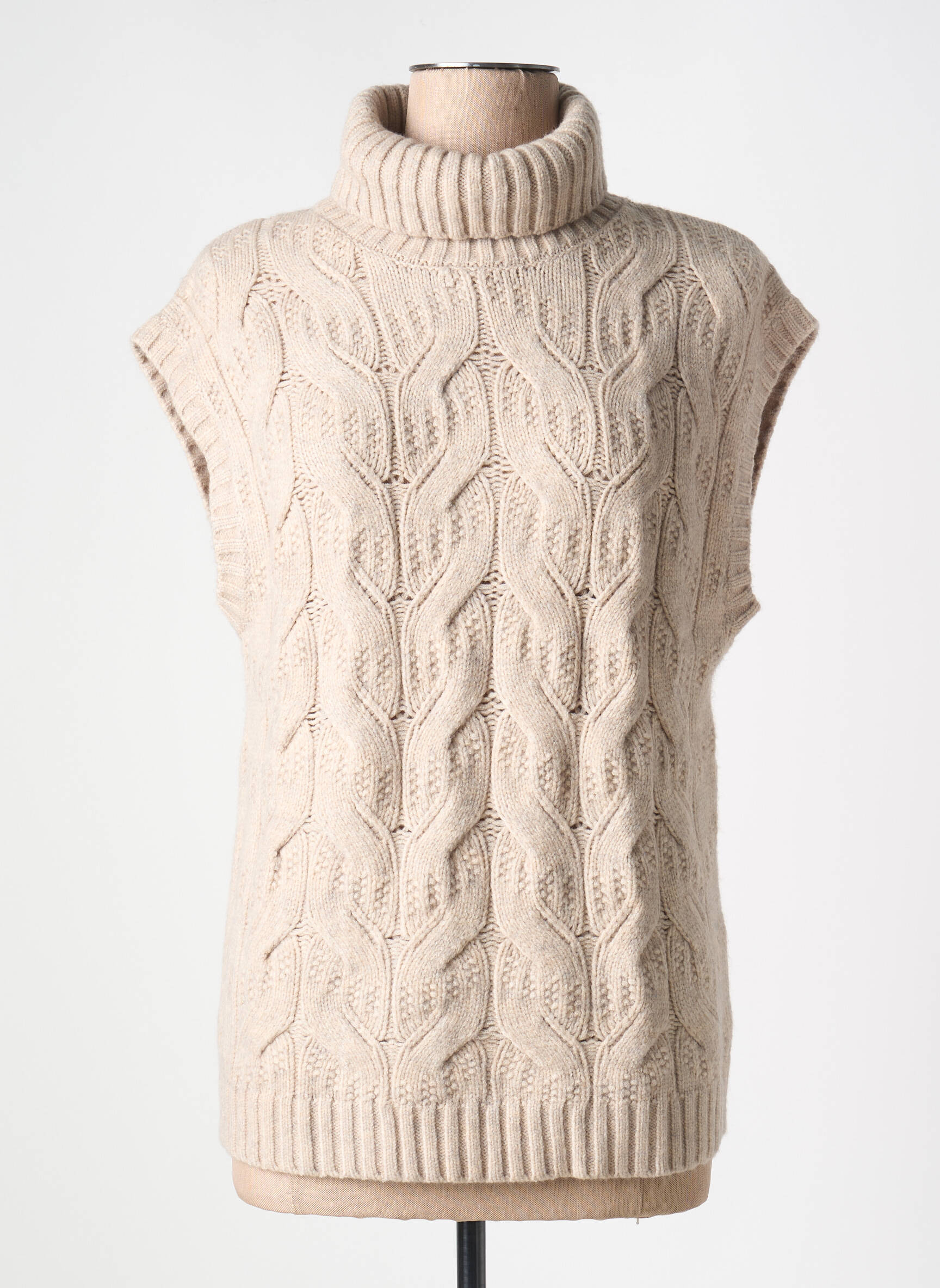 Pulover Cu Guler Înalt Geisha Bej Fără Mâneci