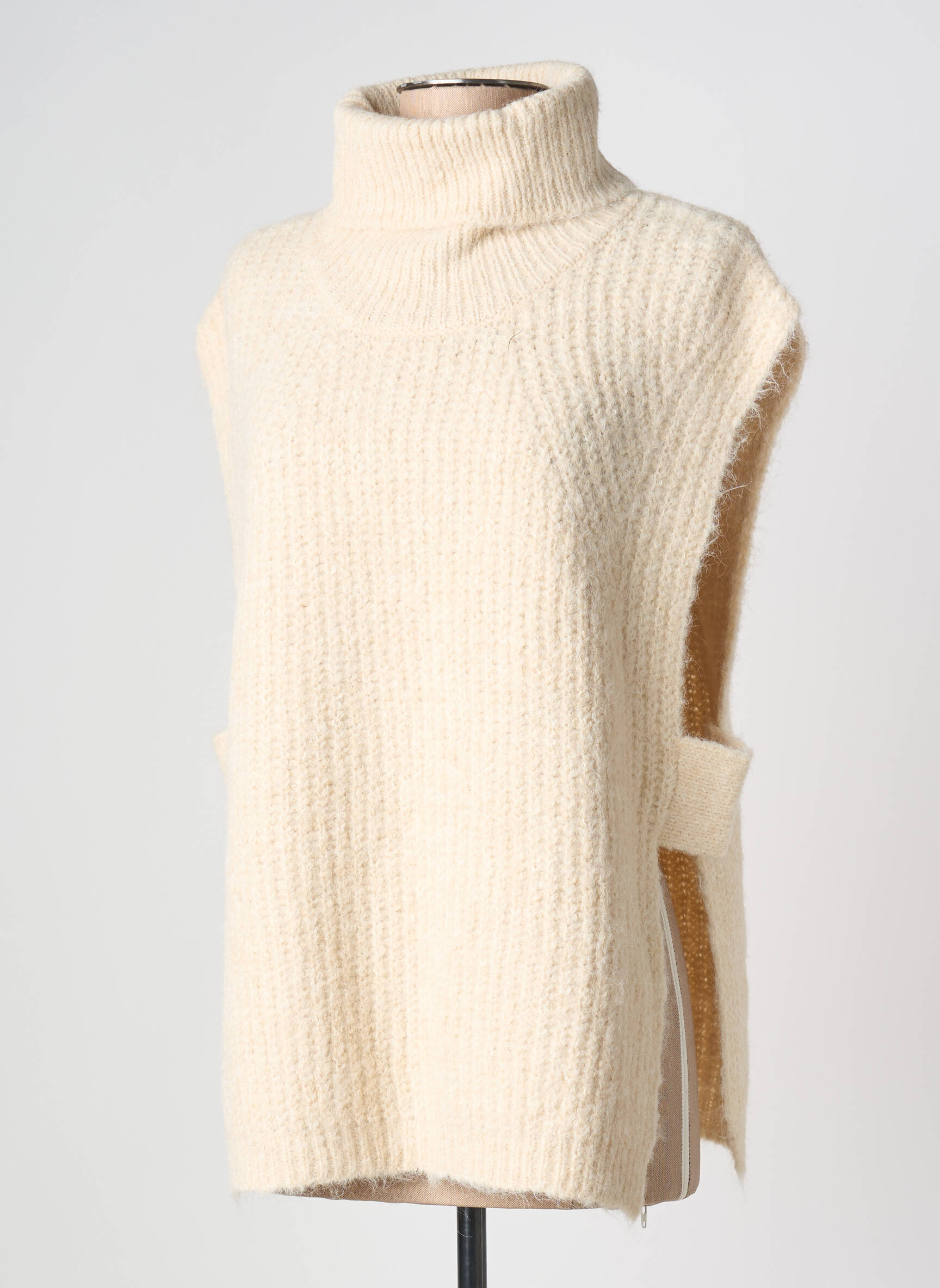 Pulover Cu Guler Înalt Molly Bracken Bej Fără Mâneci