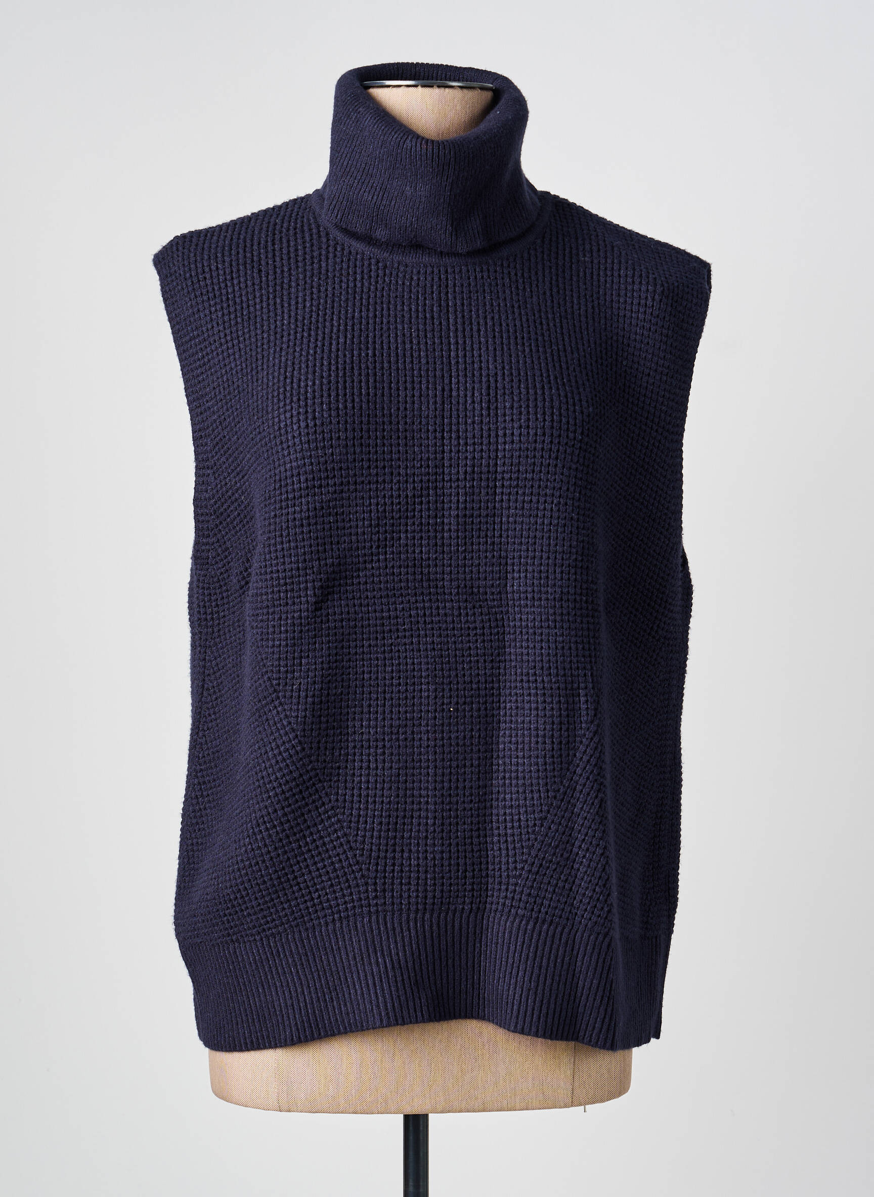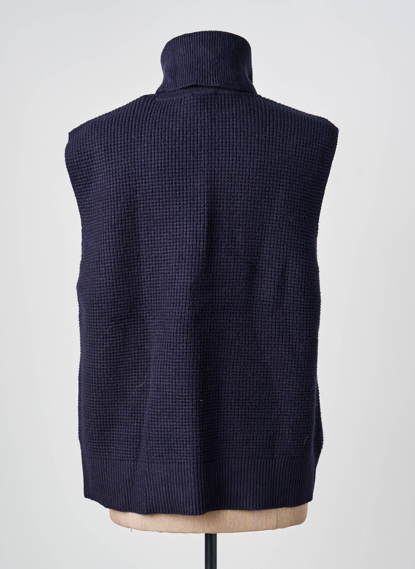 Pulover Cu Guler Înalt Yest Albastru Fără Mâneci