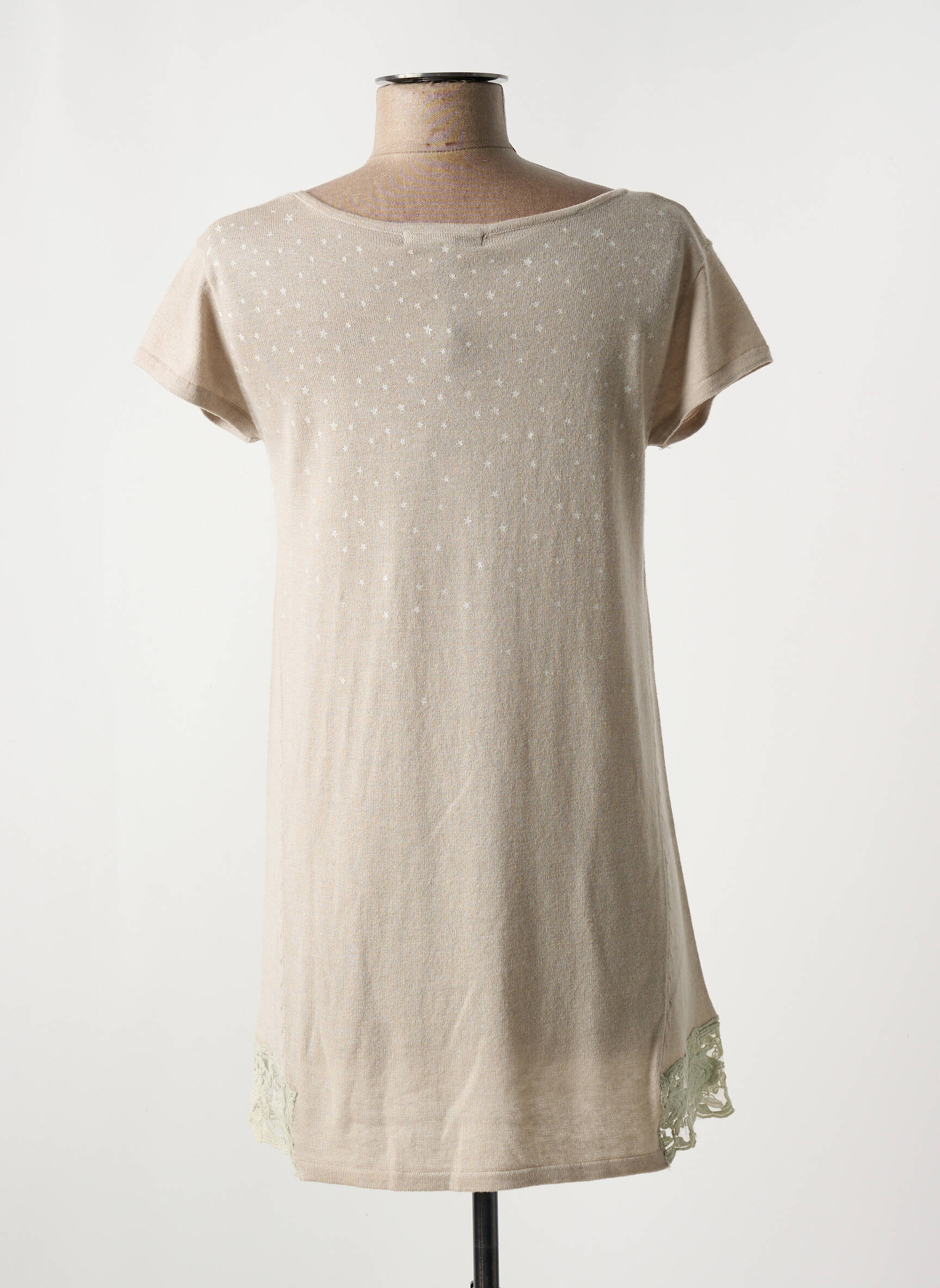 Pulover Tunică Akela Key Bej Mâneci Scurte
