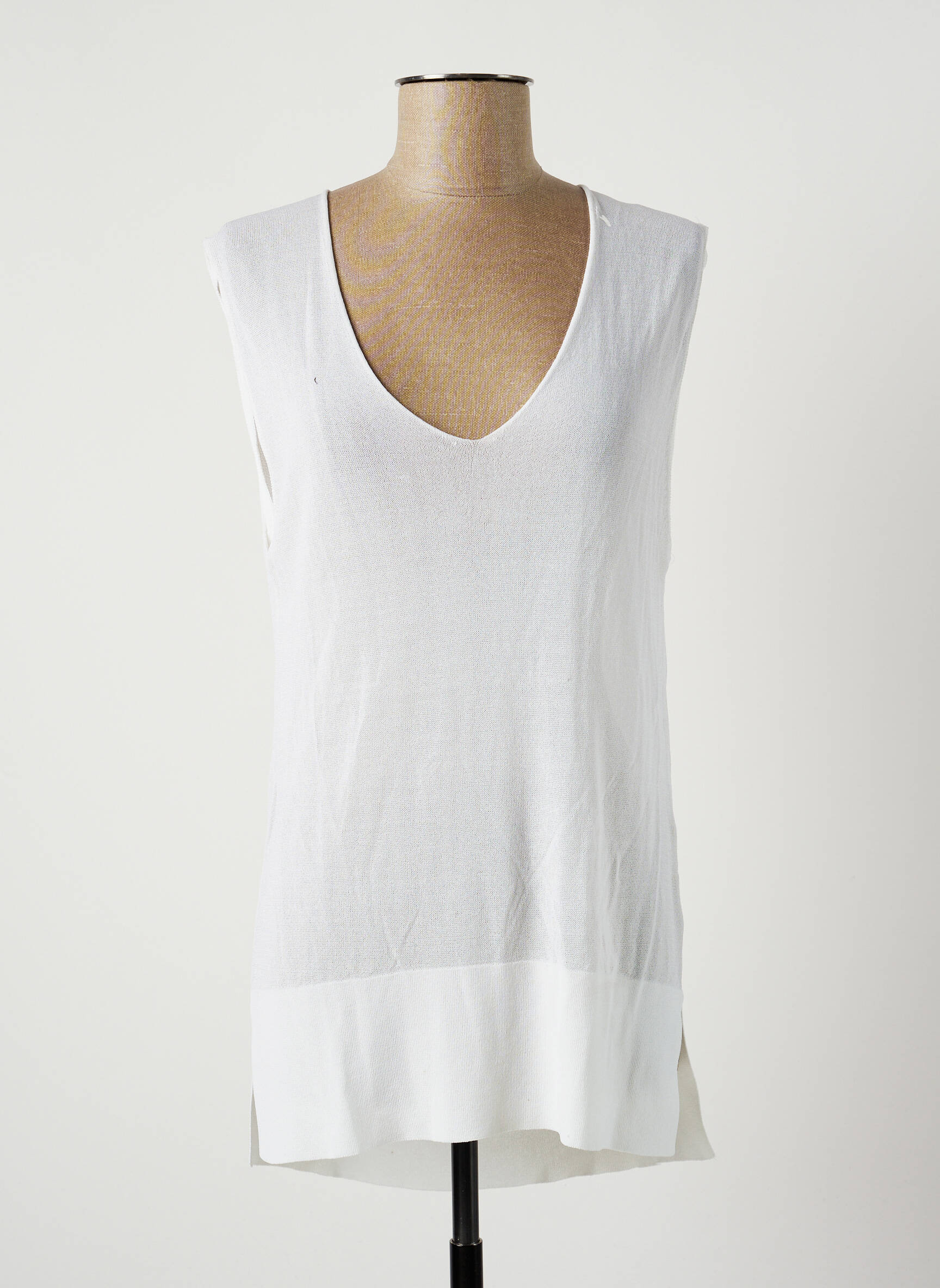 Pulover Tunică American Vintage Alb Fără Mâneci