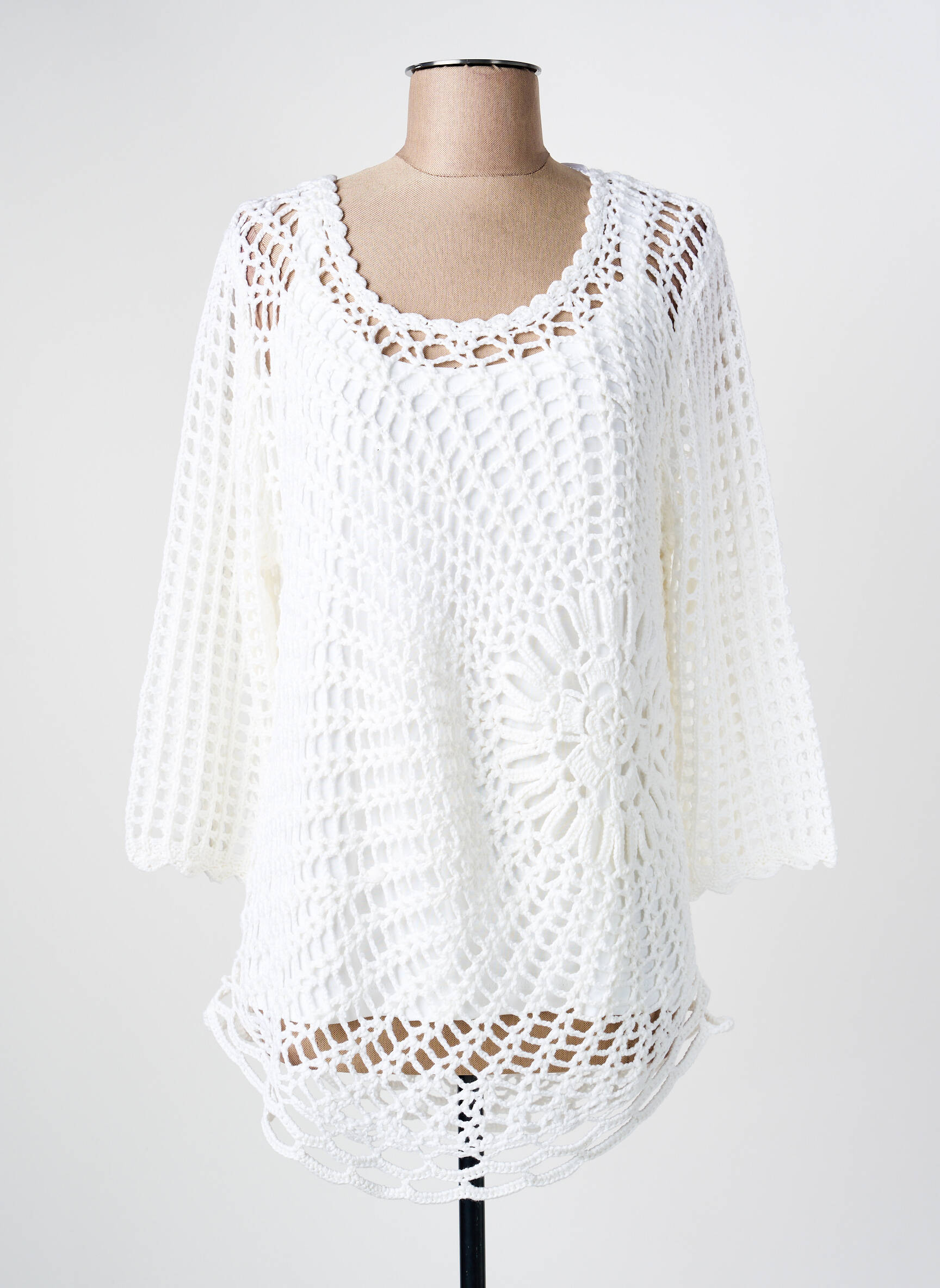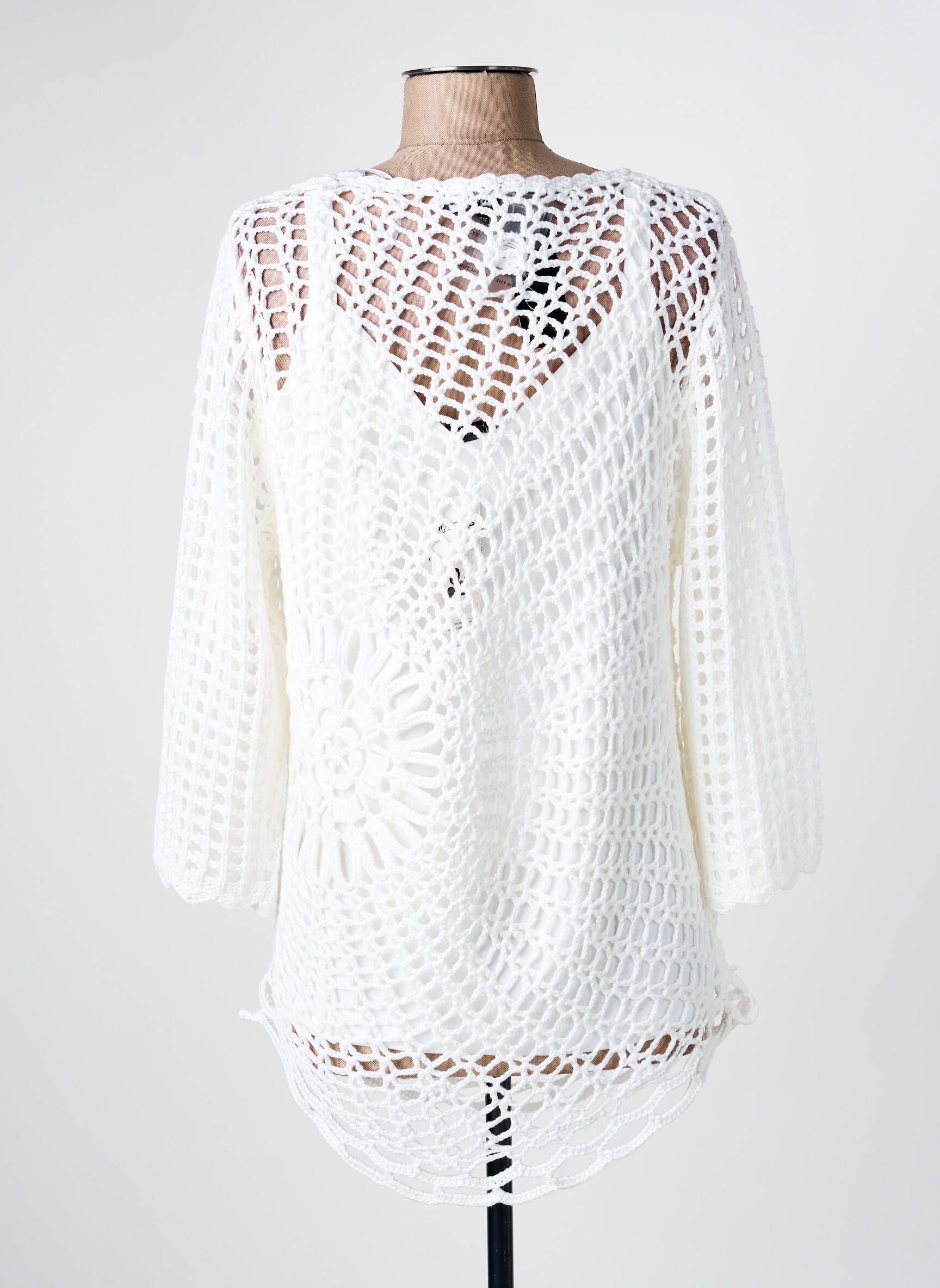 Pulover Tunică Marble Alb Mâneci 3/4